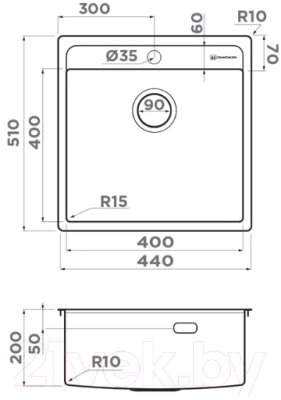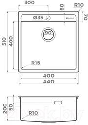 • Комплект поставки мойка, перелив, сифон, выпуск (донный клапан), крепления