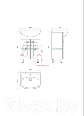 - Ширина умывальника 51 см