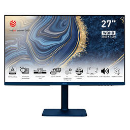 Монитор MSI - Modern MD272QP Ultramarine, 27", 16:9, IPS, 4ms, 250cd/m², 1000:1, 2560x1440 (WQHD), 75Hz, 1x HDMI, 1x DP, USB-hub, HAS, pivot, speakers, цвет Синий, 9S6-3PB19H-069