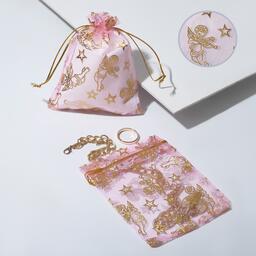 Мешочек рождественский "Ангелы", 10 х 12см, цвет розовый с золотом