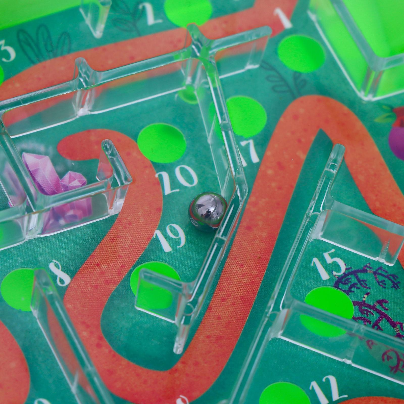 Ваша задача — пройти шариком весь лабиринт, следуя стрелке с цифрами. Будьте внимательны! На поле расположено множество лунок, которые желают захватить ваш шарик. Наклоняйте игру в разные стороны, чтобы шарик докатился до финиша. Иначе вам придётся начать свой путь заново!