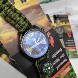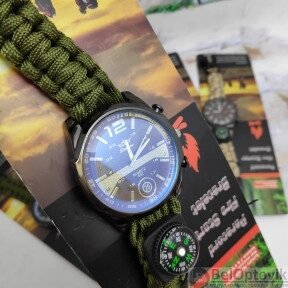 Тактические часы с браслетом из паракорда XINHAO 04, QUARTZ 002 коричневый циферблат, зеленый браслет