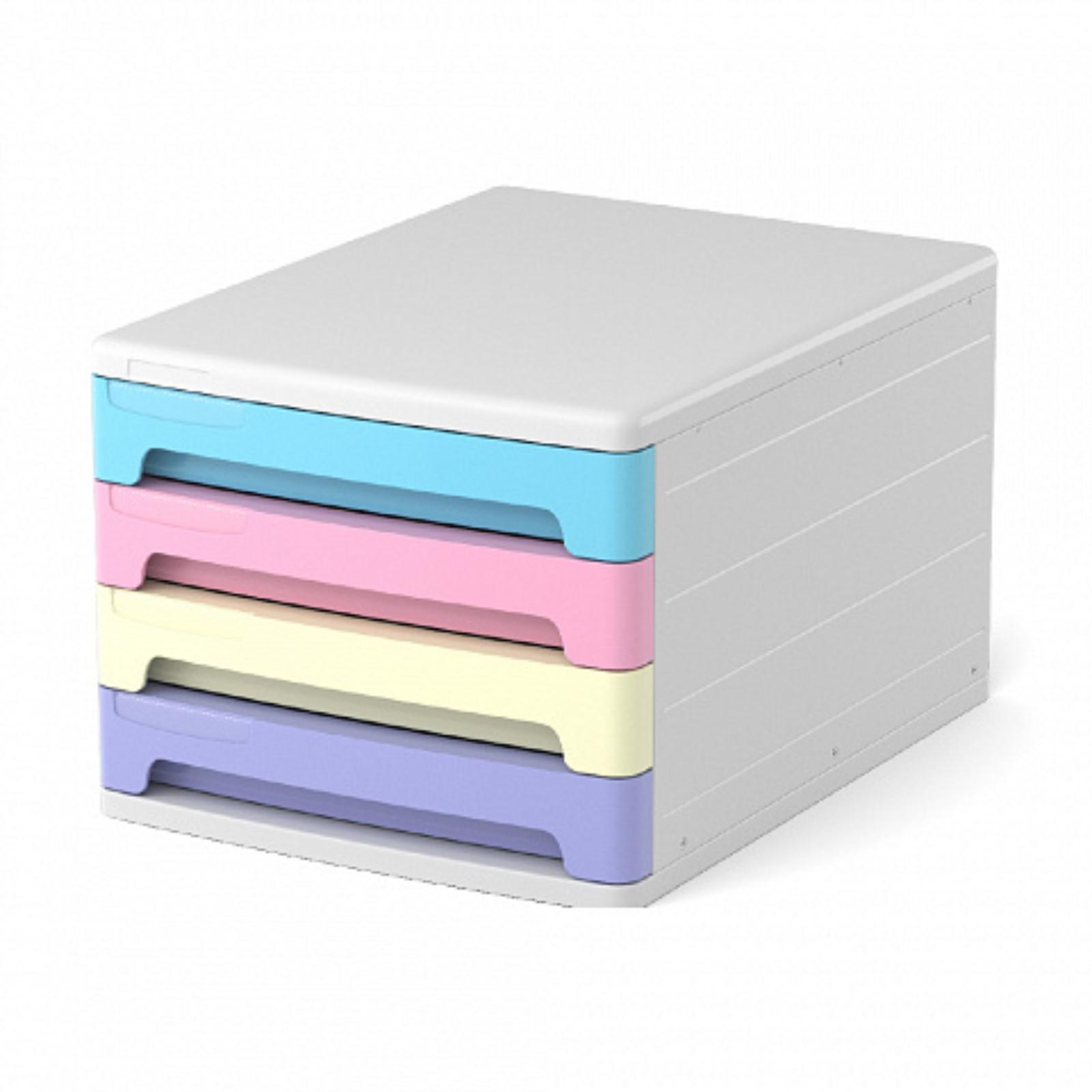 Бокс универсальный ErichKrause Pastel, 4 отделения, белый с голубыми, розовыми, жёлтыми ящиками