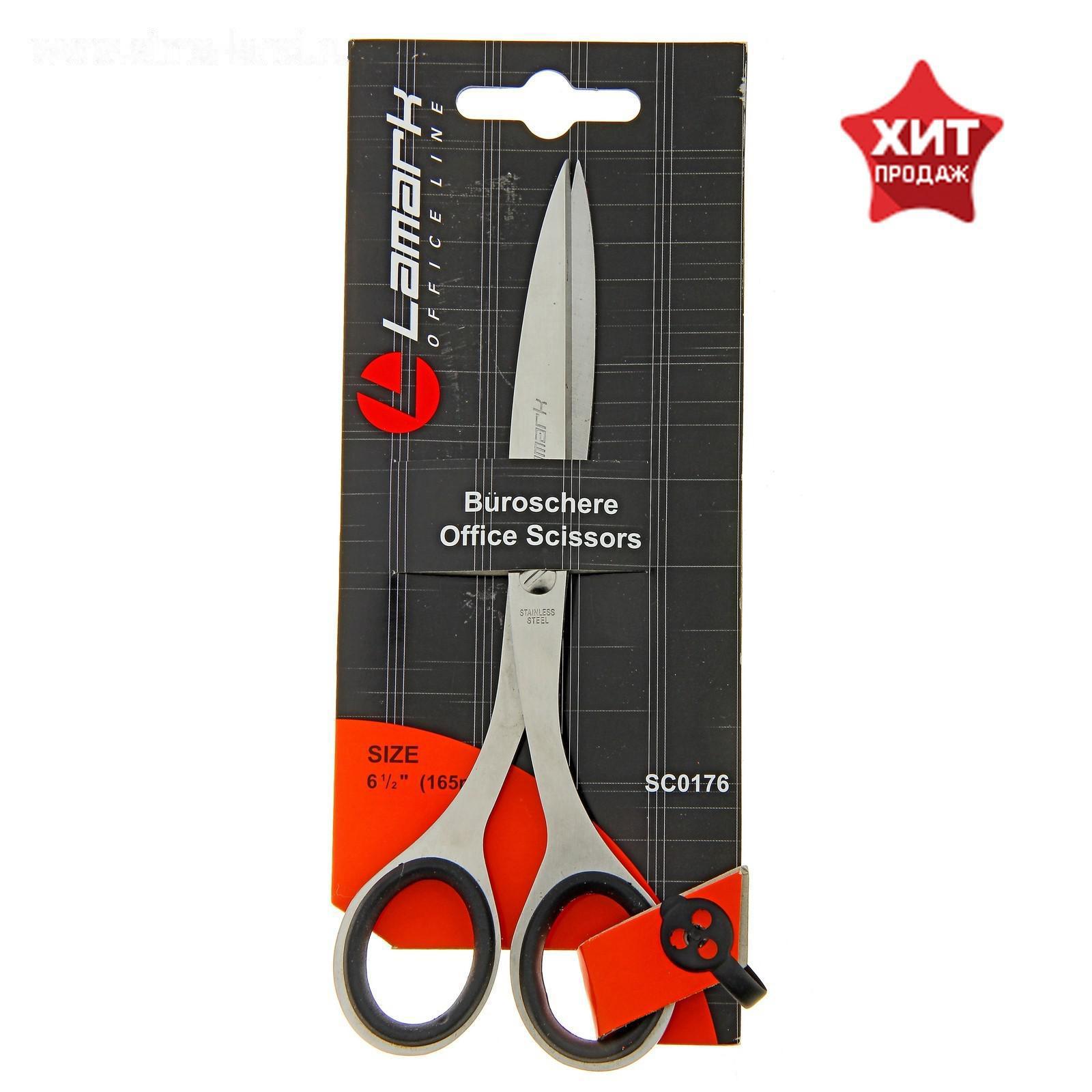 Ножницы канцелярские цельнометаллические Lamark из нержавеющей стали, с симметричными кольцами, с резиновыми вставками. Размер 16,5 см. Поставляются в блистере с еврослотом.