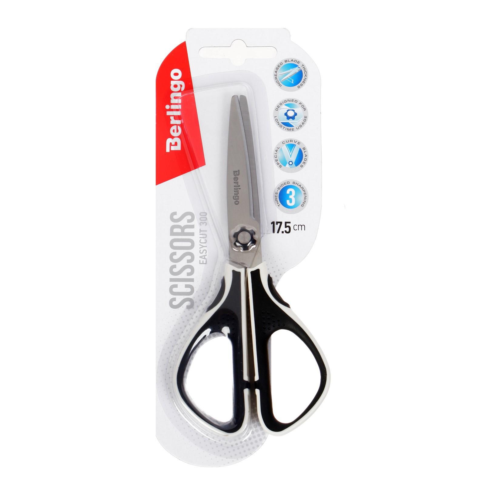 Ножницы 17.5см Berlingo "Easycut 300" ассорти, мягкие вставки, европодвес