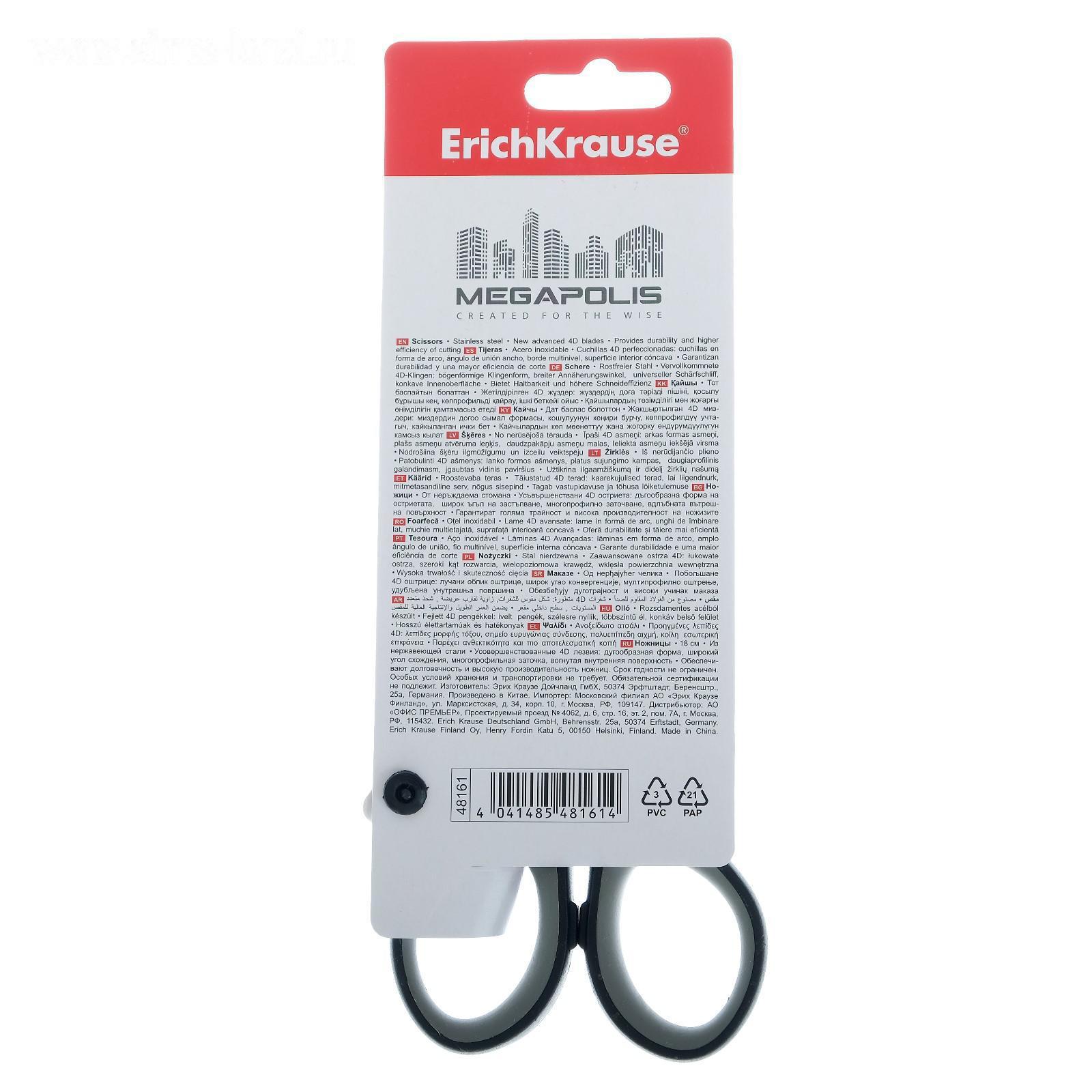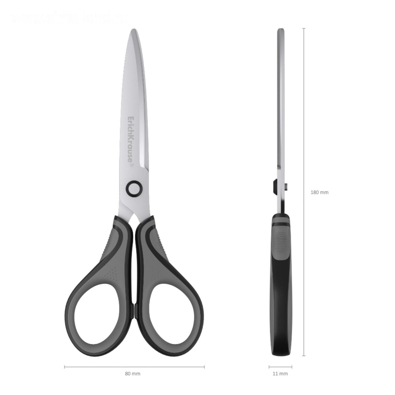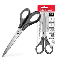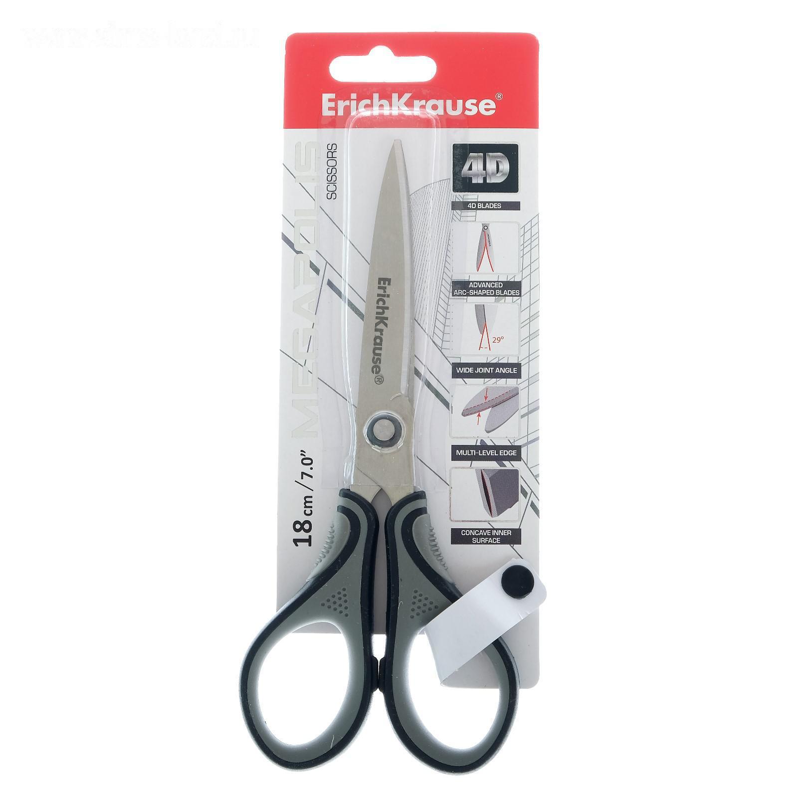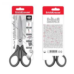 Ножницы ErichKrause Megapolis, 18 см, с усовершенствованными 4D-лезвиями, не ржавеют, ручки с резиновыми вставками, серо-чёрные