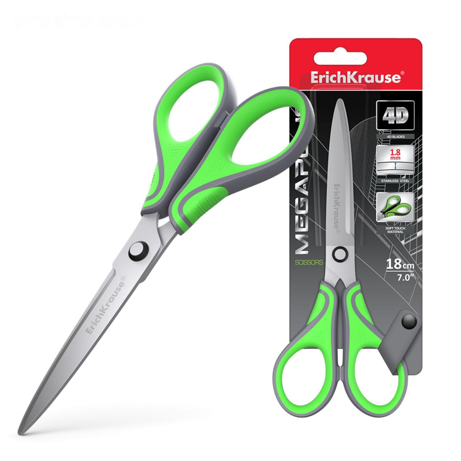 Ножницы ErichKrause Megapolis, 18 см, с усовершенствованными 4D-лезвиями, не ржавеют, ручки с резиновыми вставками, в блистере