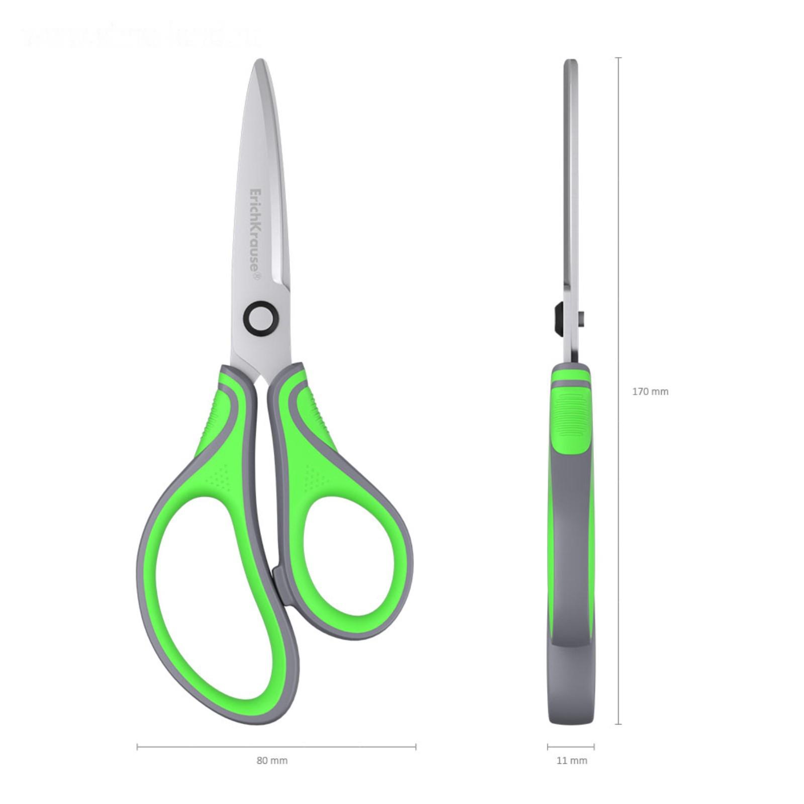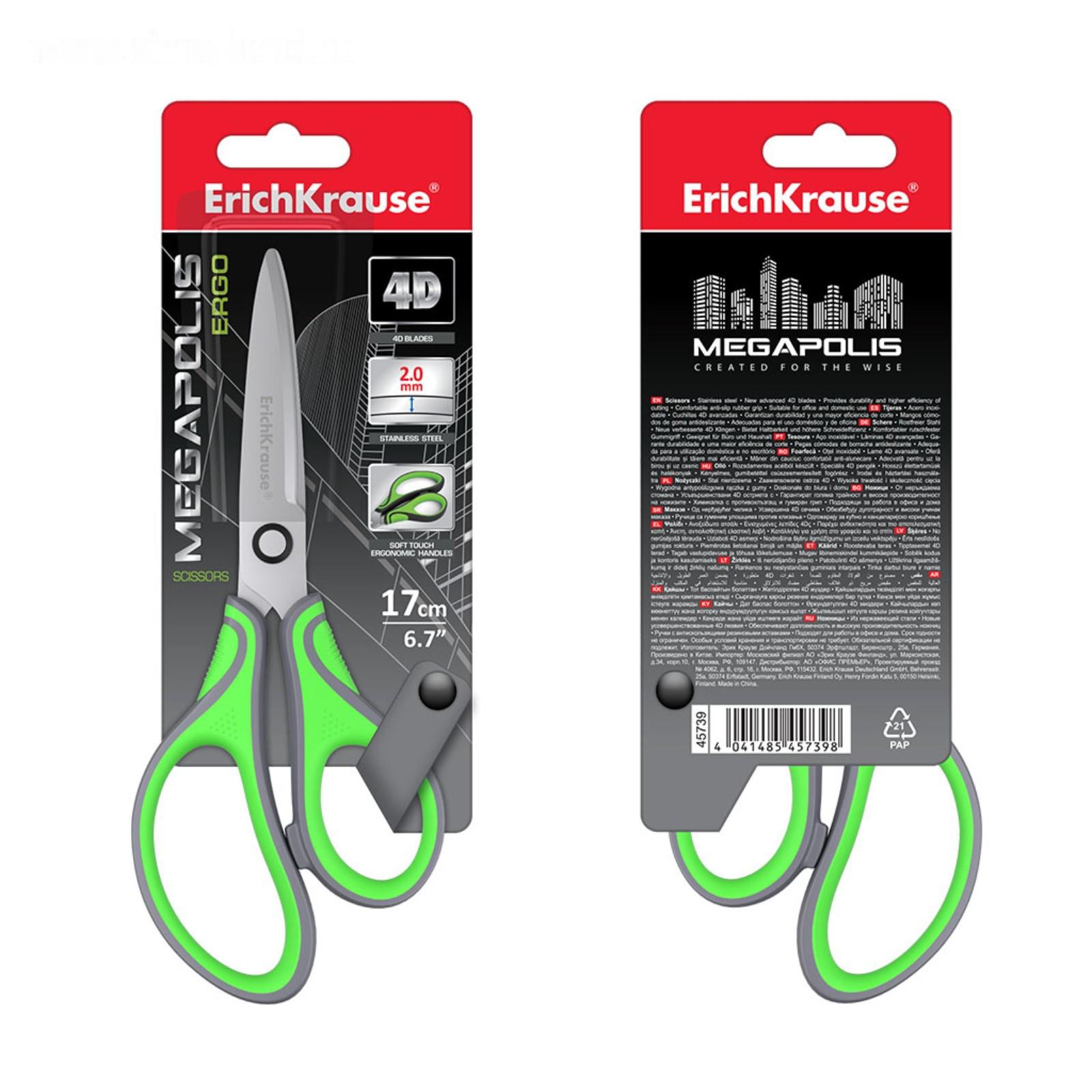 Ножницы ErichKrause Megapolis Ergo, 17 см, с усовершенствованными 4D-лезвиями, не ржавеют, ручки с резиновыми вставками, в блистере