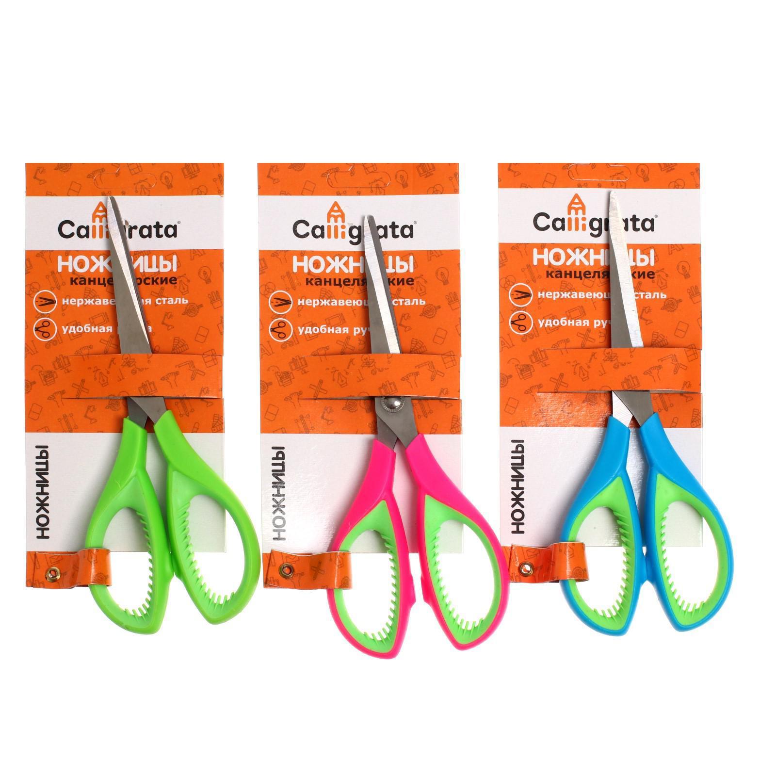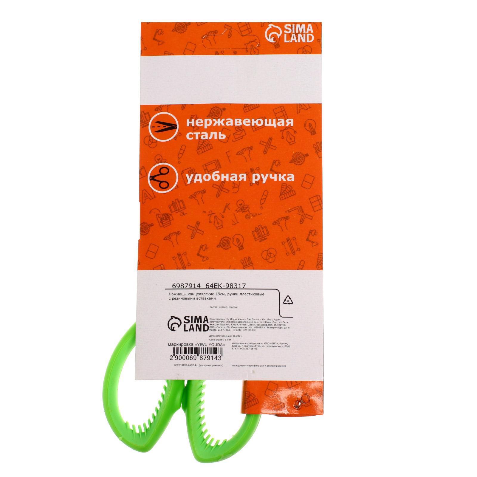 Ножницы канцелярские 19 см, ручки пластиковые с резиновыми вставками, МИКС