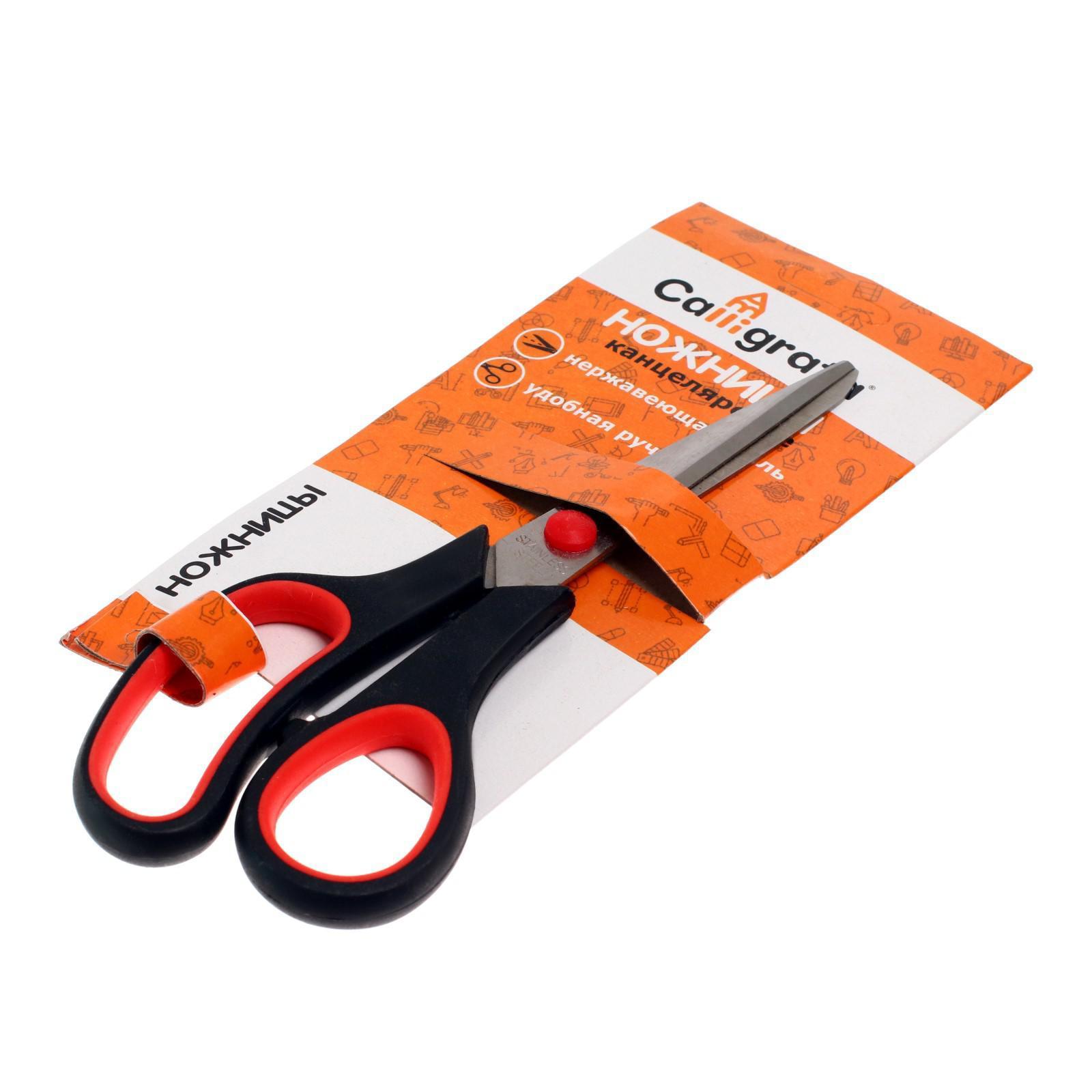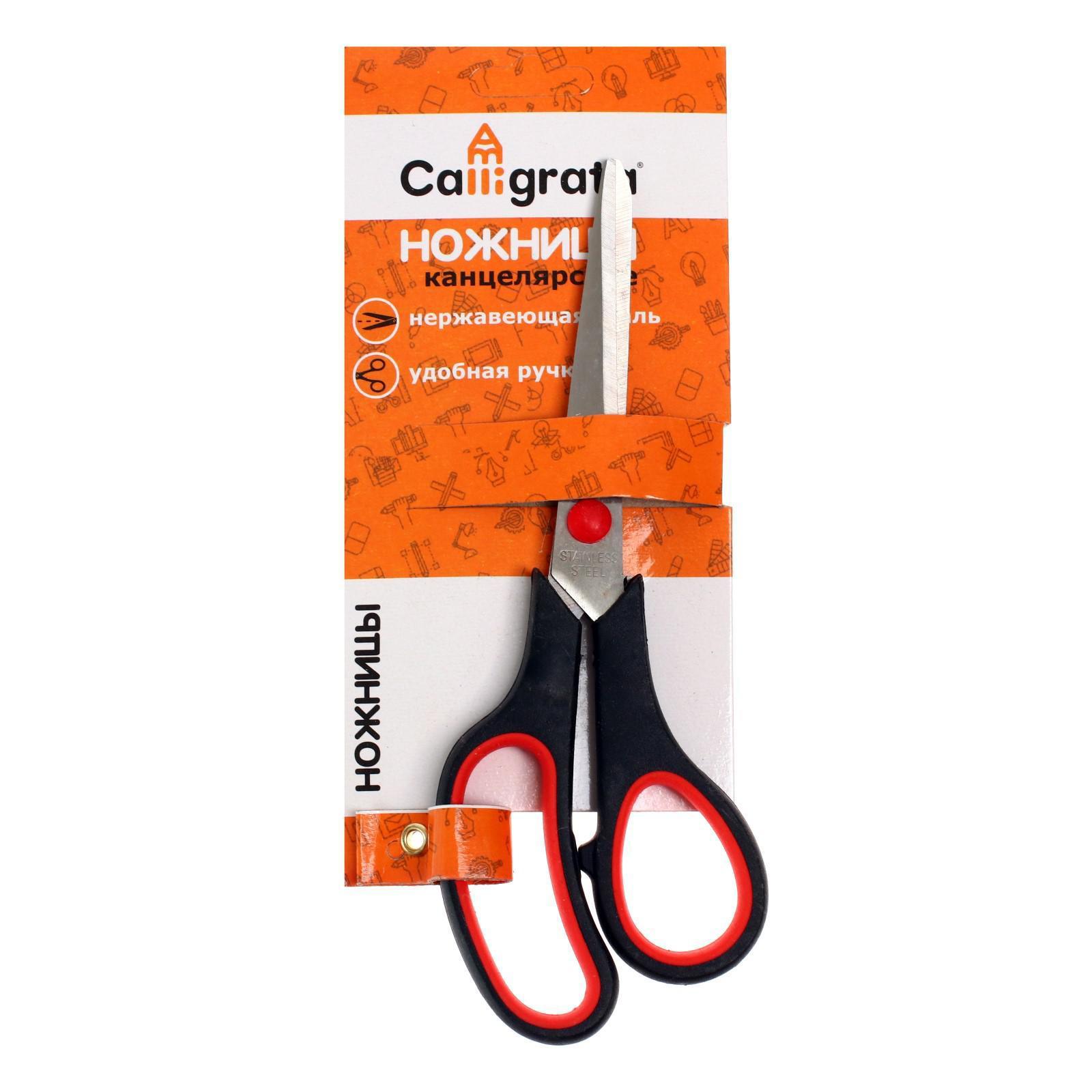 Ножницы канцелярские 19 см, ручки пластиковые с резиновыми вставками