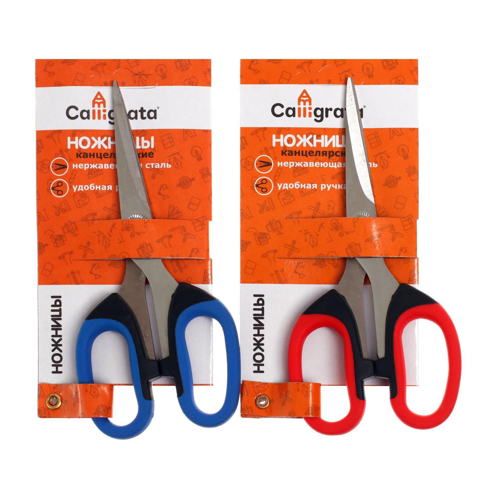 Ножницы канцелярские 14 см, ручки пластиковые с резиновыми вставками, МИКС