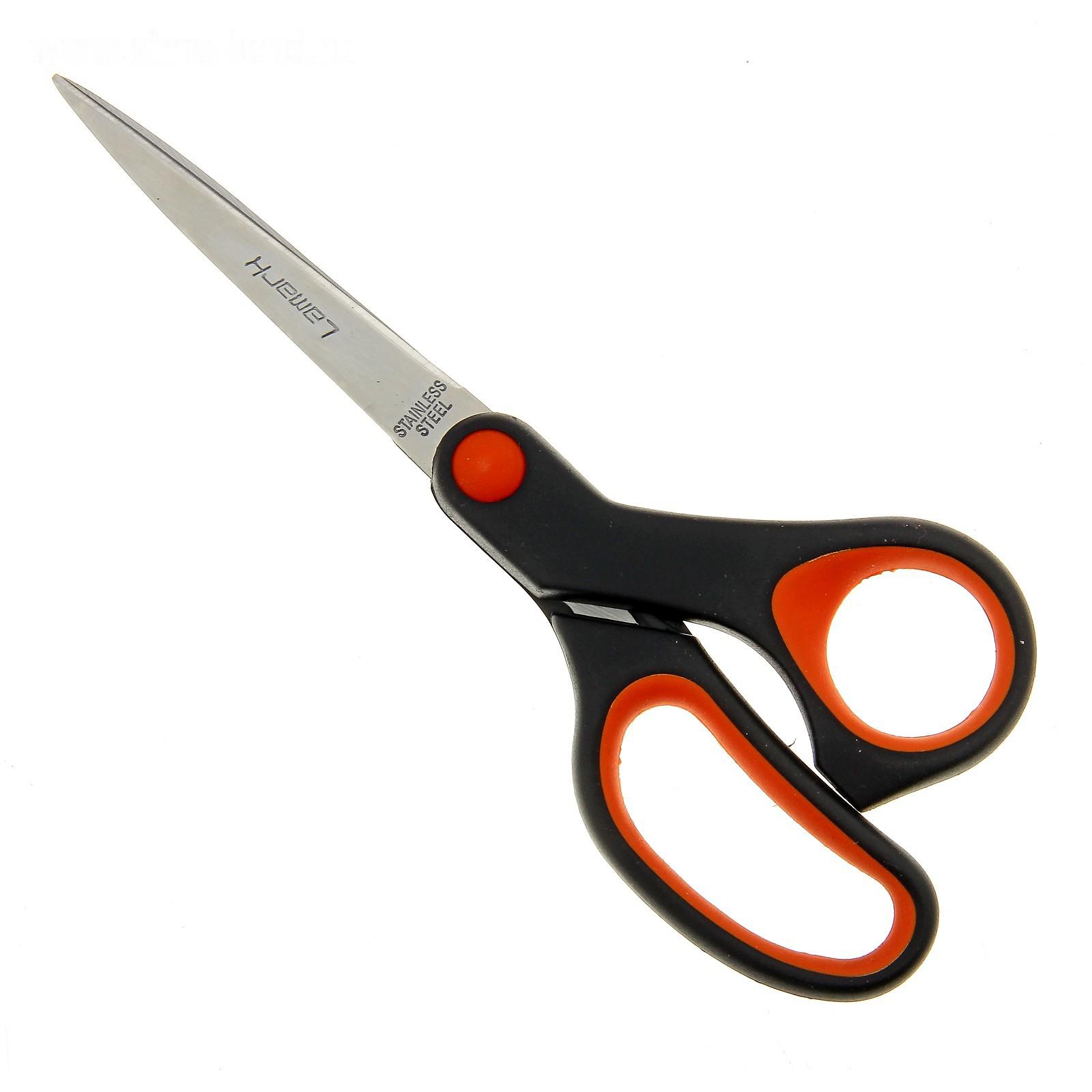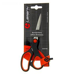 Ножницы канцелярские Lamark. Лезвия из нержавеющей стали, анатомические ручки с мягкими оранжевыми вставкам с удобным захватом обеспечивают комфортную работу с материалами разной плотности. Поставляются в блистере с еврослотом.