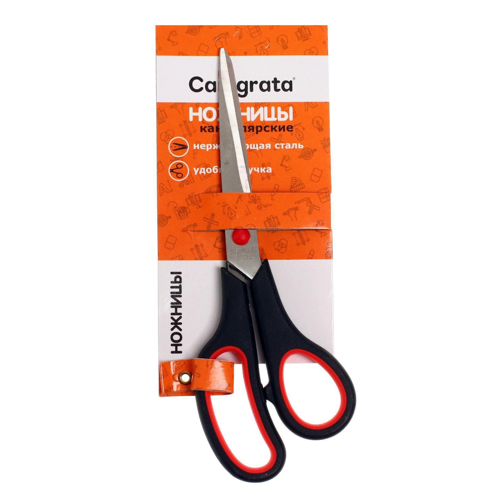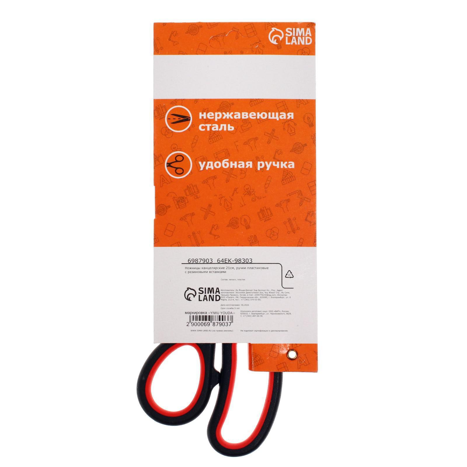 Ножницы канцелярские 21 см, ручки пластиковые с резиновыми вставками