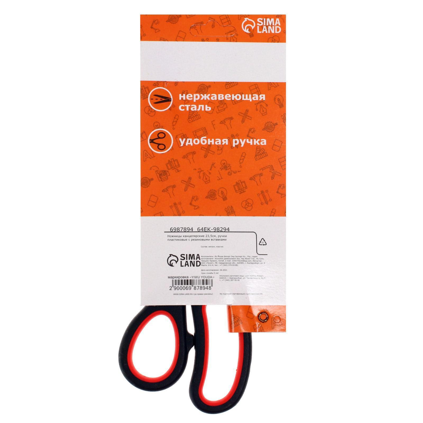 Ножницы канцелярские 23,5 см, ручки пластиковые с резиновыми вставками