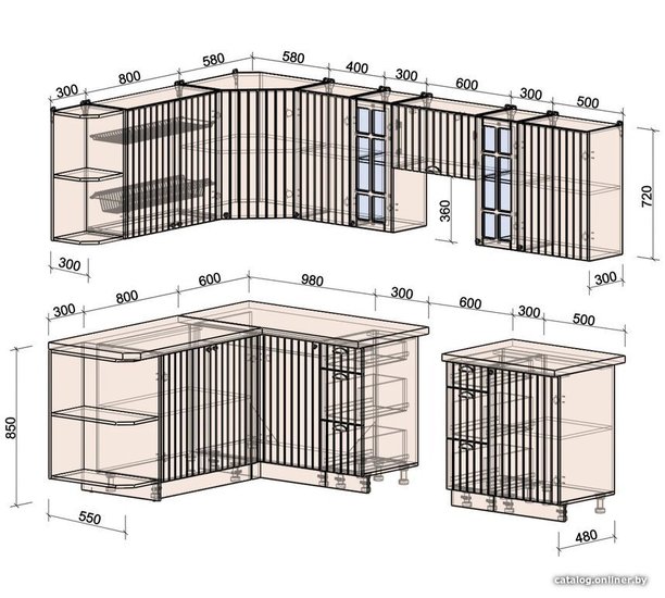 - Высота нижних шкафов 55 см