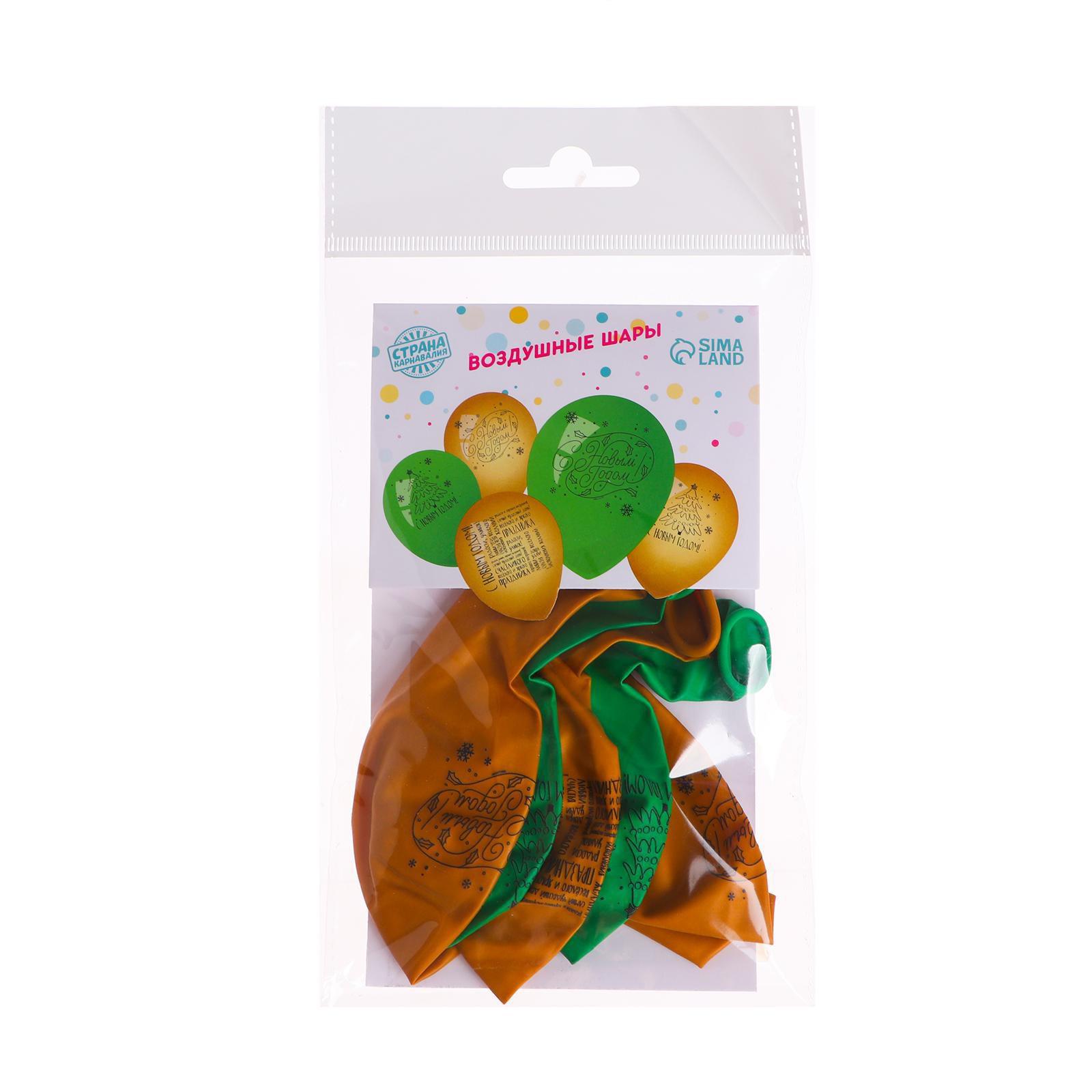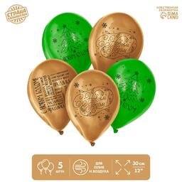 Шар воздушный 12" «С Новым годом», золото, зелёный, набор 5 шт.