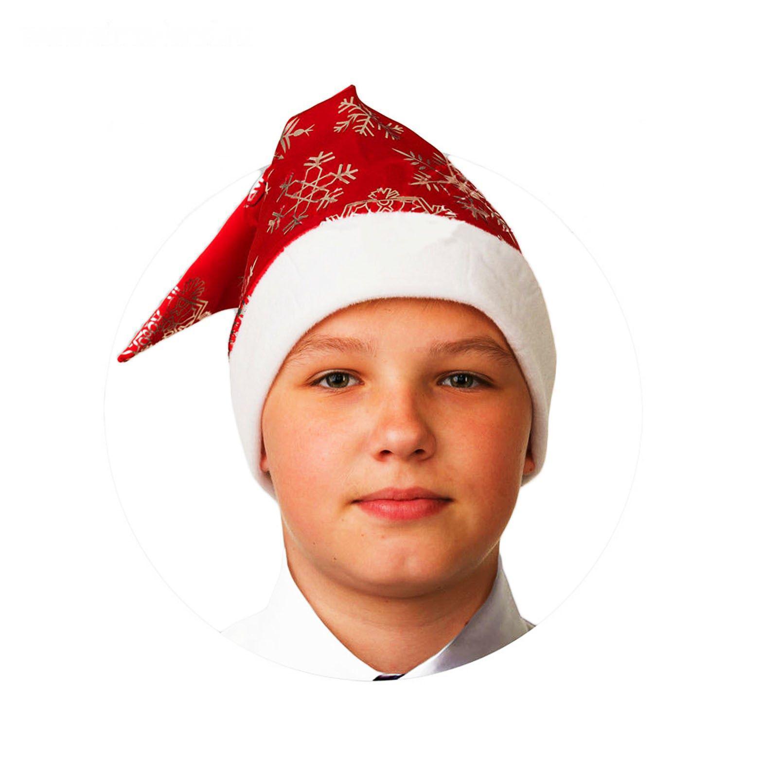 Колпак новогодний, красный со снежинками, сатин