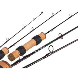 Двухчастная удочка для зимней ловли с бланком из высокомодульного графита T30. За счет этого она очень легкая и обладает высокой чувствительностью при ловле на блесны, балансиры и другие объемные приманки. Высококачественный графит хлыстика, с вершинкой Solid Tip, не теряет своих свойств на морозе и выдерживает большие нагрузки при подсечке и вываживании крупной рыбы. Хлыстик этой удочки несколько смягчен, что уменьшает вероятность обрыва мягких губ окуня. Рукоятка удочки изготовлена из португальской пробки класса AAA. Катушка может крепиться в любом месте рукоятки за счет подвижного крепления из специального графита. Облегченные пропускные кольца изготовлены из нержавеющей стали, а тюльпан SIC защищает леску от повреждения при неожиданной поклёвке крупной рыбы. Комплектуется чехлом.