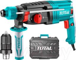 - В комплекте кейс, бур, дополнительная рукоятка, ограничитель глубины сверления, дополнительный патрон, долото, пика (зубило)
