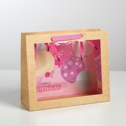 Пакет крафтовый с пластиковым окном «Happy Birthday», 31 х 26 х 11 см