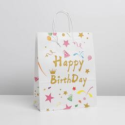 Пакет HAPPY BIRTHDAY white, 33 х 26 х 12 см