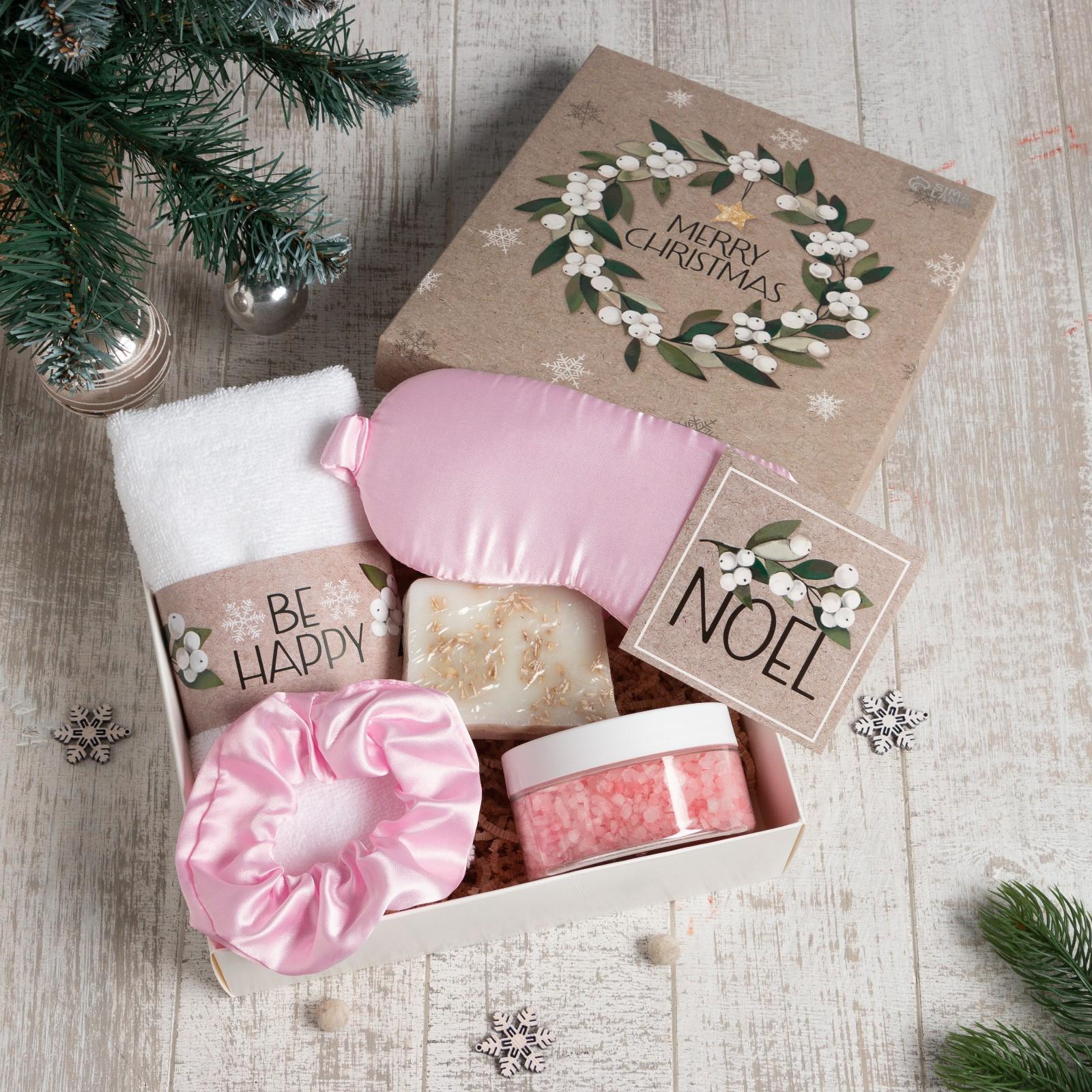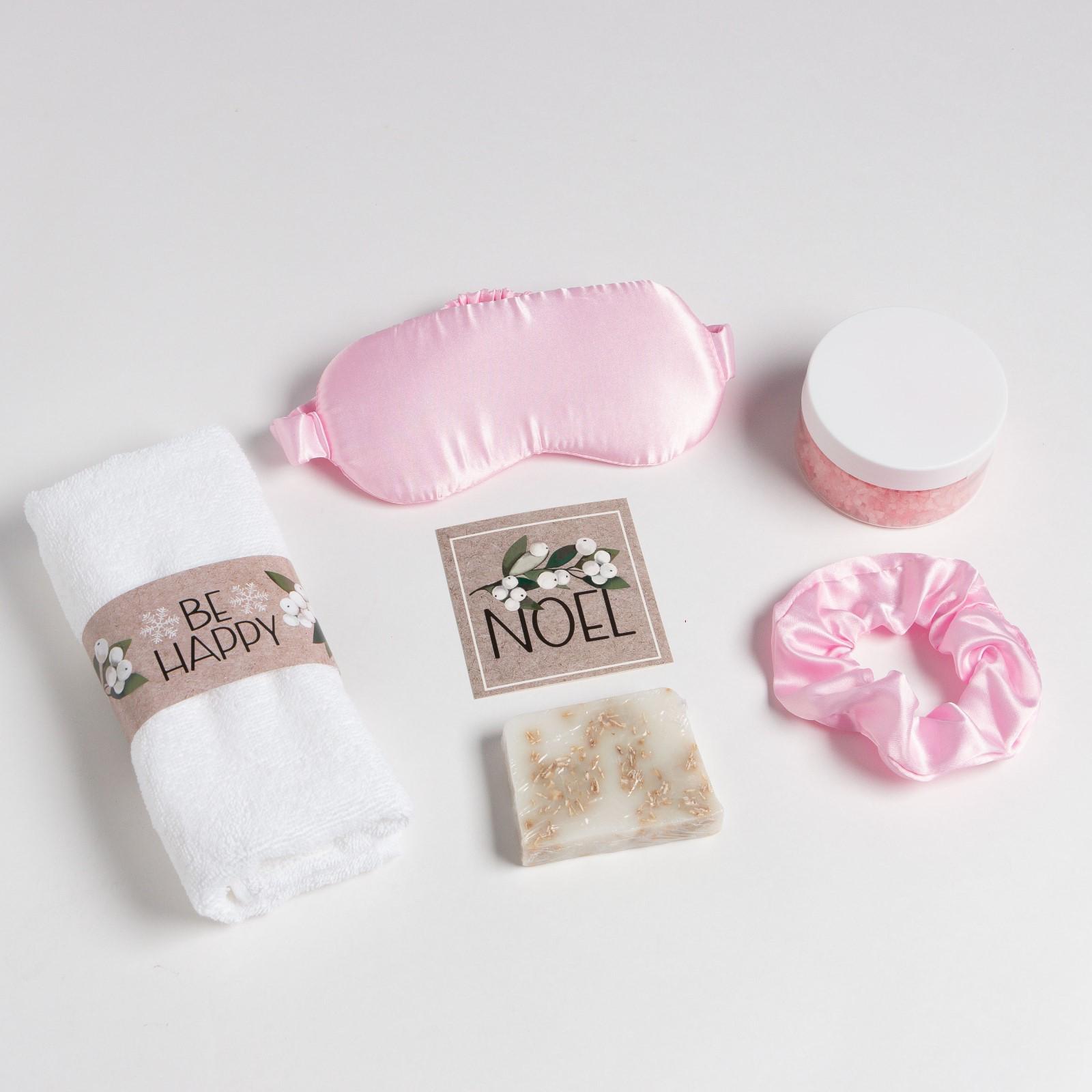 • Составляющие набора Маска для сна, Мыло, Открытка, Полотенце, Резинка, Соль для ванны