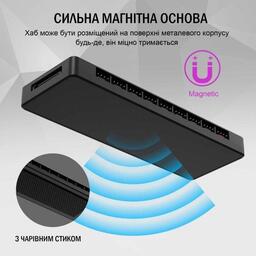 Хаб Zezzio 1 to 9 ARGB & PWM HUB кріпиться до корпусу системного блоку за допомогою вбудованого магніту. Вам не потрібно використовувати зовнішні інструменти для кріплення. Розміщуйте хаб у зручному місці корпусу. Додаткове живлення SATA безпосередньо підключається від блоку без перехідників. При одночасному підключенні всіх дев’яти роз’ємів, додаткове живлення забезпечує безперебійне живлення хаба та мінімізує ризик виходу з ладу контролера підсвічування материнської плати.