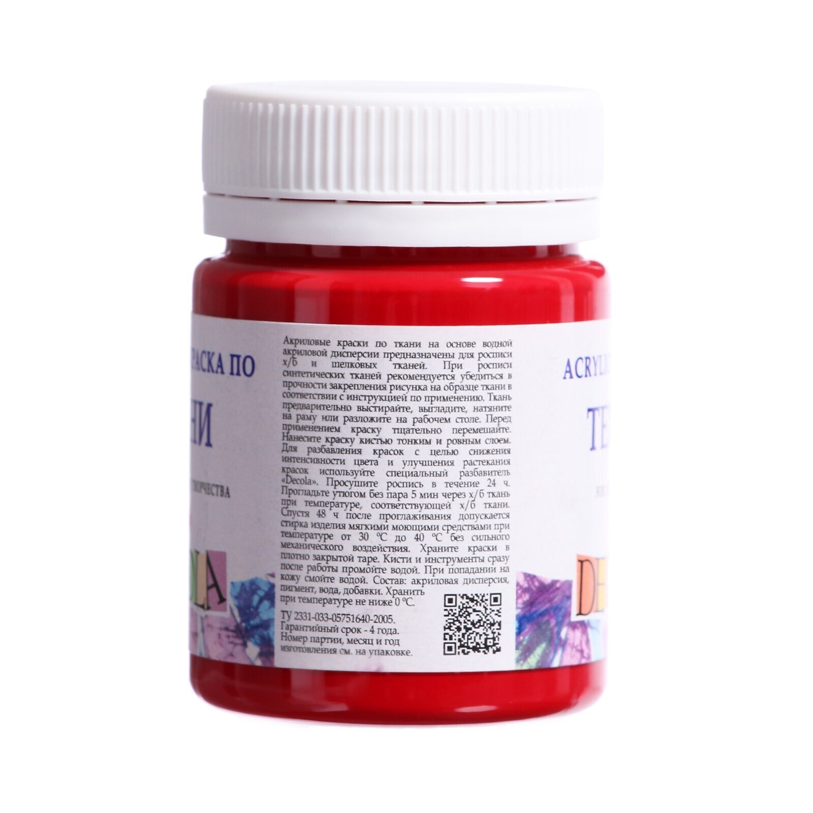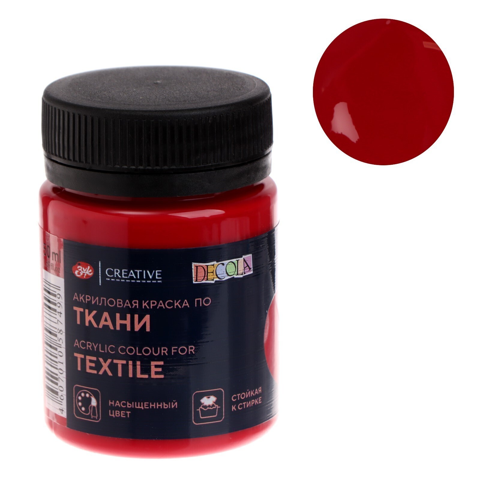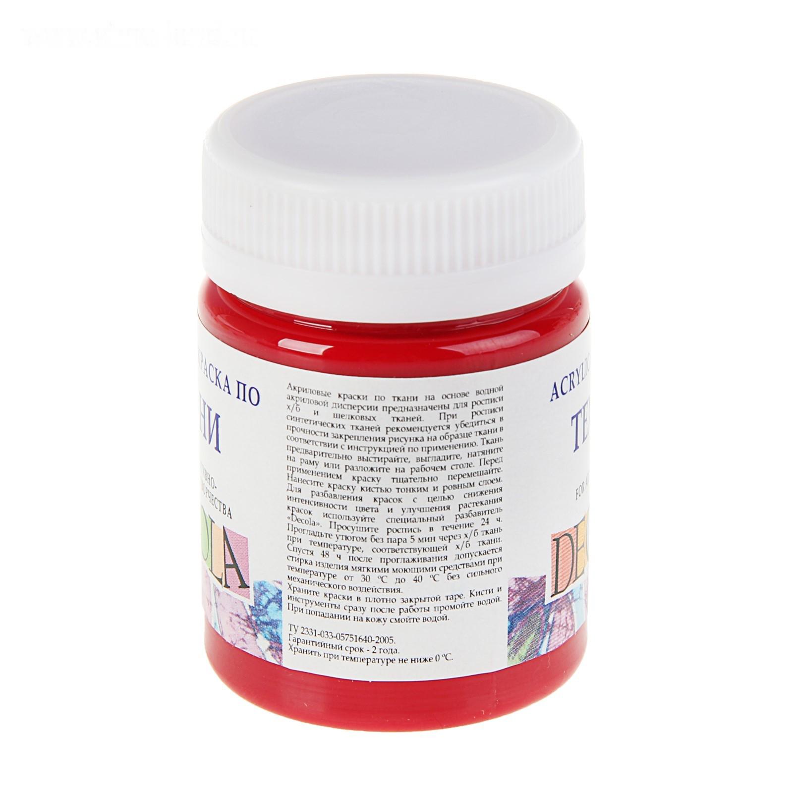Краска по ткани, банка 50 мл, Decola, Карминовая 4128319 (акриловая на водной основе)
