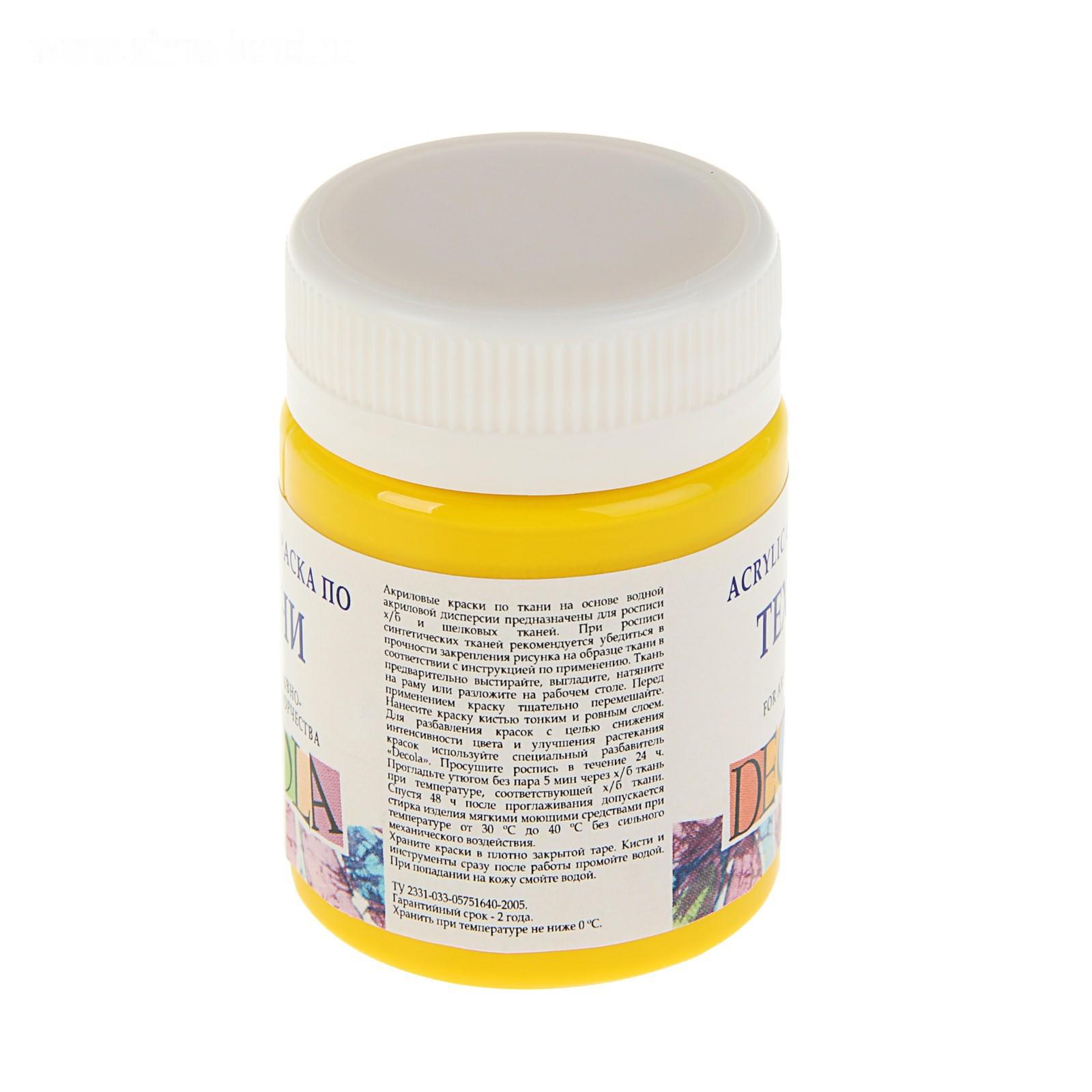 Краска по ткани, банка 50 мл, Decola, Желтая средняя (акриловая на водной основе)