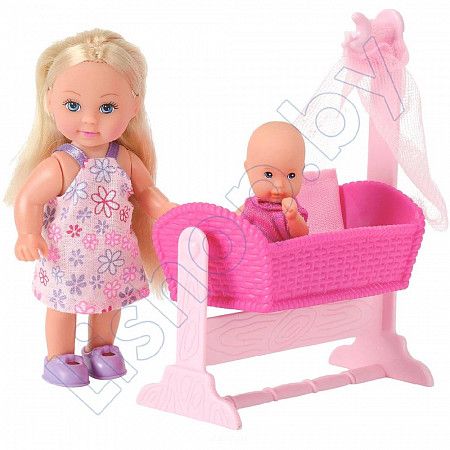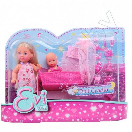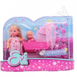 Кукла Эви с кроваткой SIMBA (10 5736242) порадует любую девочку и надолго увлечет ее. В комплект входит кукла Эви, пупс-малыш, колыбель для малыша с мягкой подушкой и одеялом, а также множество аксессуаров для кормления и ухода за малышом. Все аксессуары выполнены из прочного безопасного пластика. Кукла Эви одета в длинное платье, на малыше надето розовое боди. Вашей дочурке непременно понравится заплетать длинные белокурые волосы куклы, придумывая разнообразные прически. Руки, ноги и голова куклы подвижны, благодаря чему ей можно придавать разнообразные позы. Игры с куклой способствуют эмоциональному развитию, помогают формировать воображение и художественный вкус, а также разовьют в вашей малышке чувство ответственности и заботы. Великолепное качество исполнения делают этот набор чудесным подарком к любому празднику.