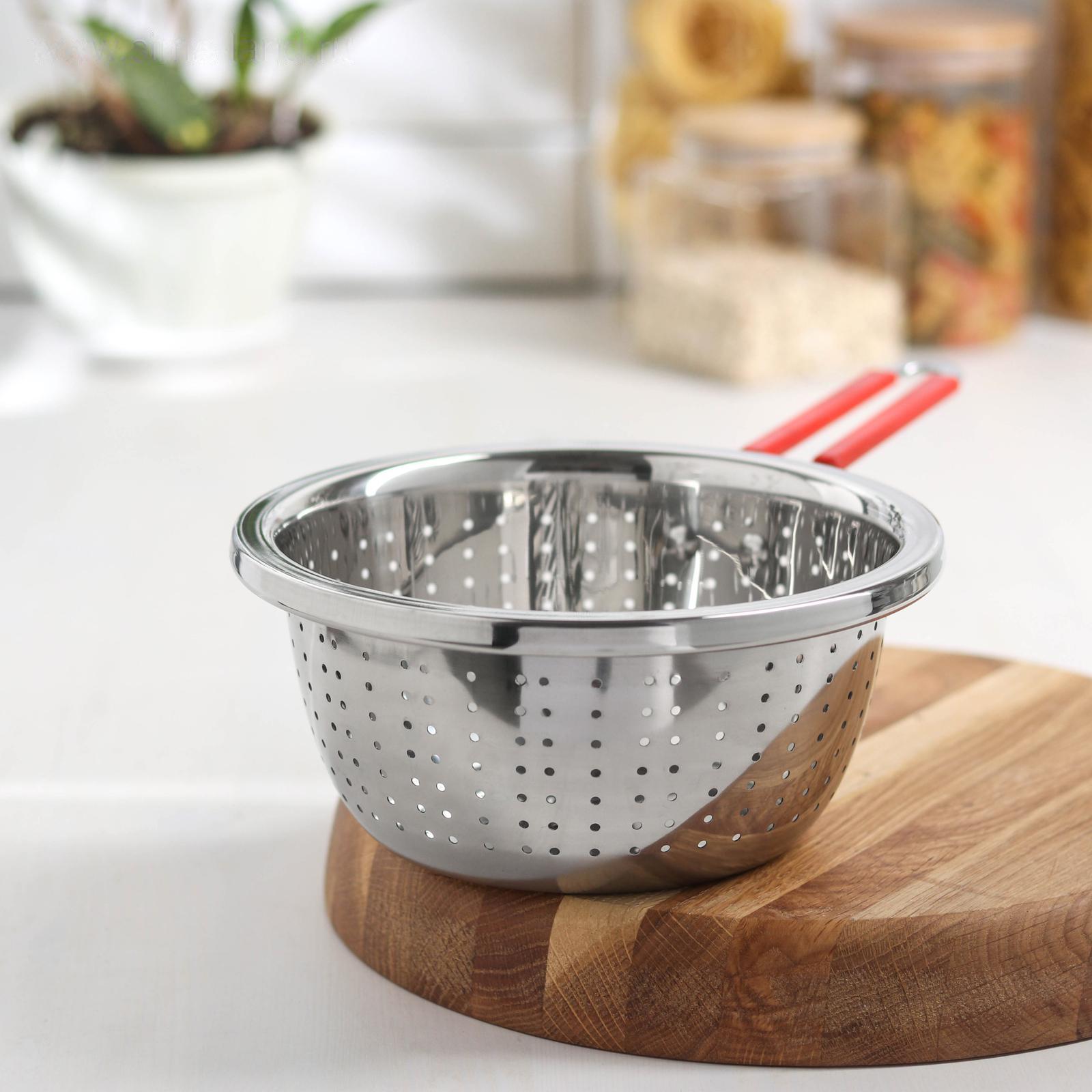 Дуршлаг — незаменимый помощник на кухне, имеет вид кастрюли с отверстиями. В основном он применяется для: