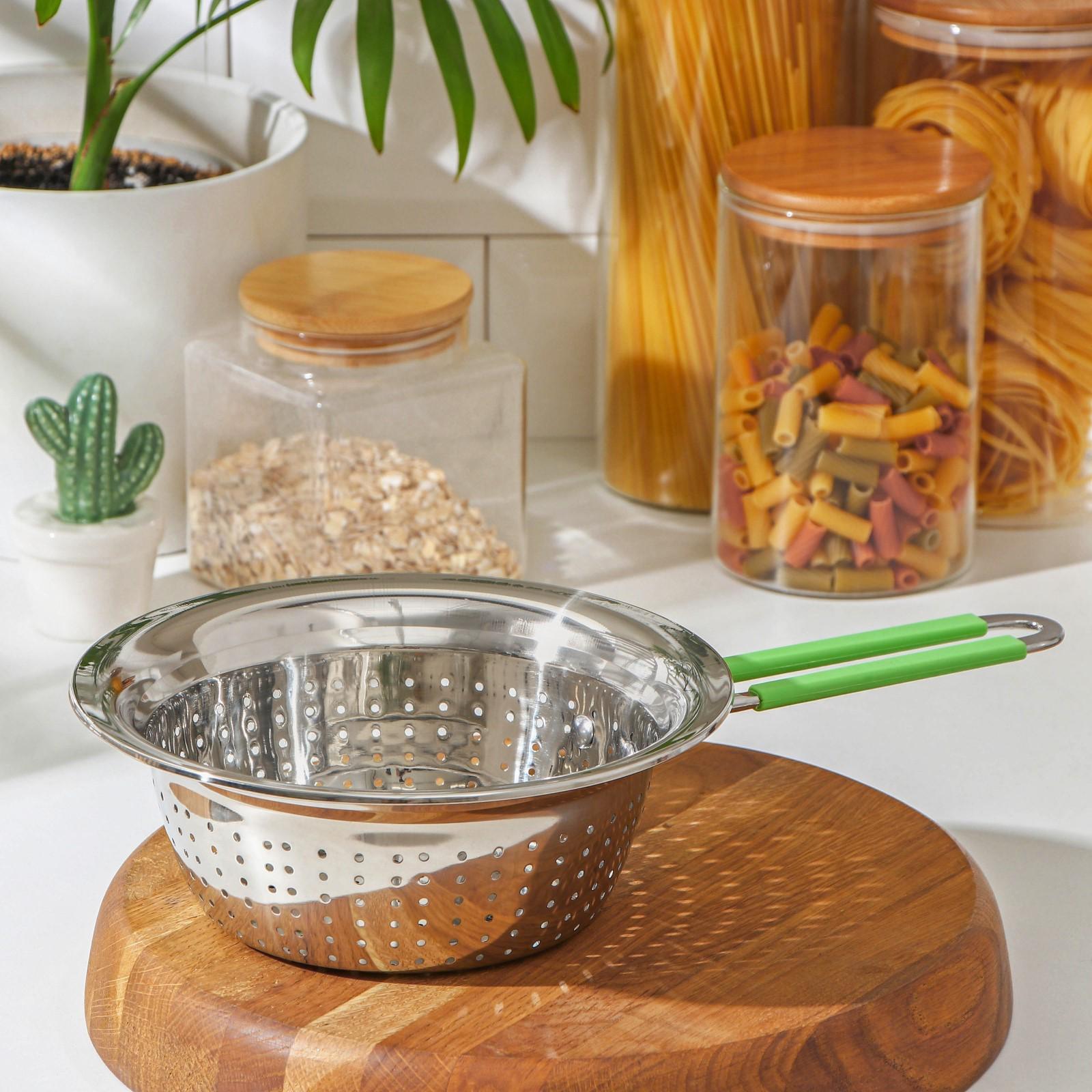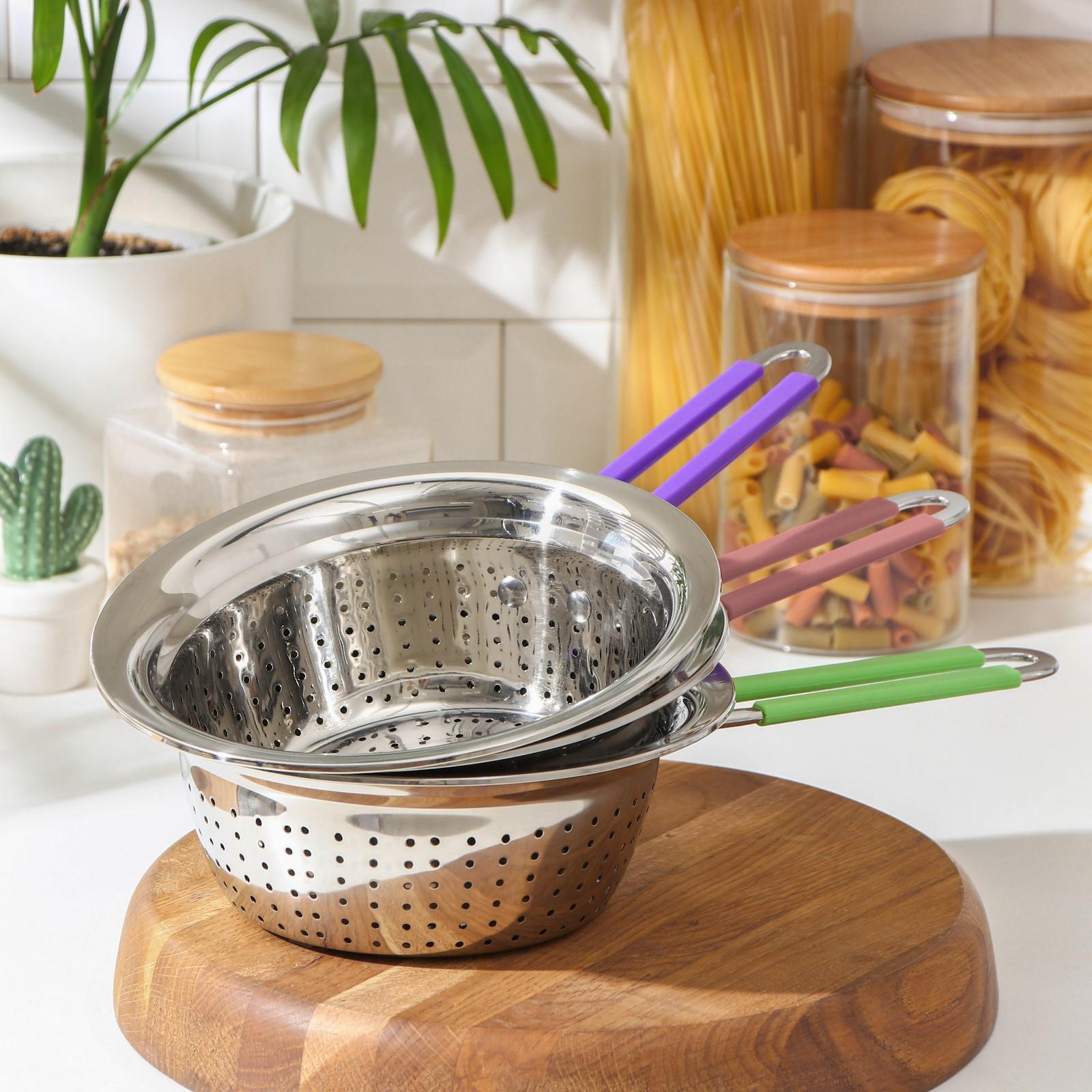 Дуршлаг с ручкой «Эдвин», 35×20×7 см, цвет ручки МИКС