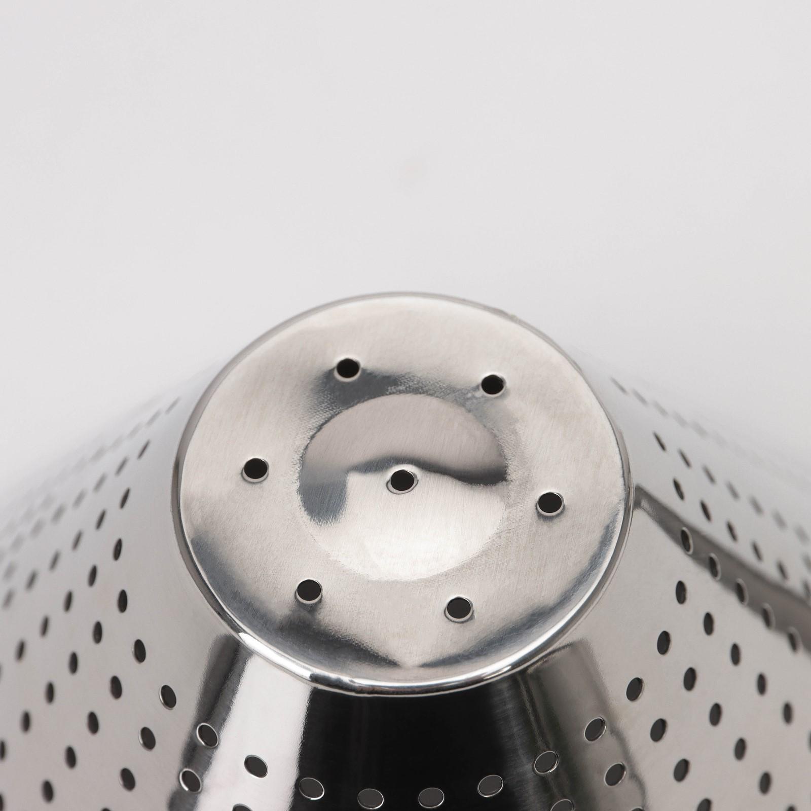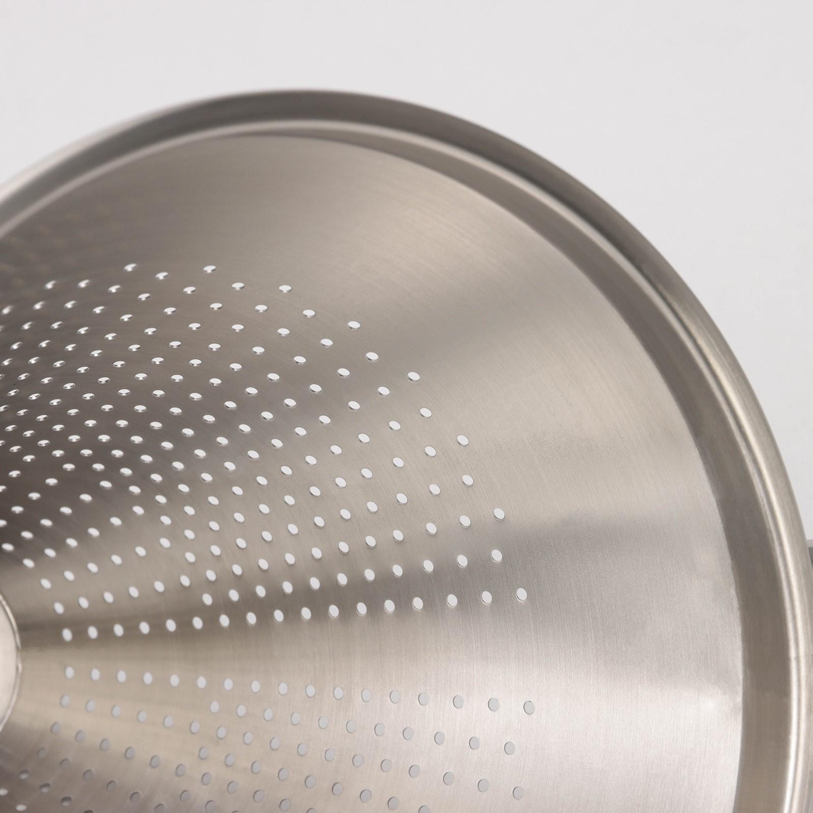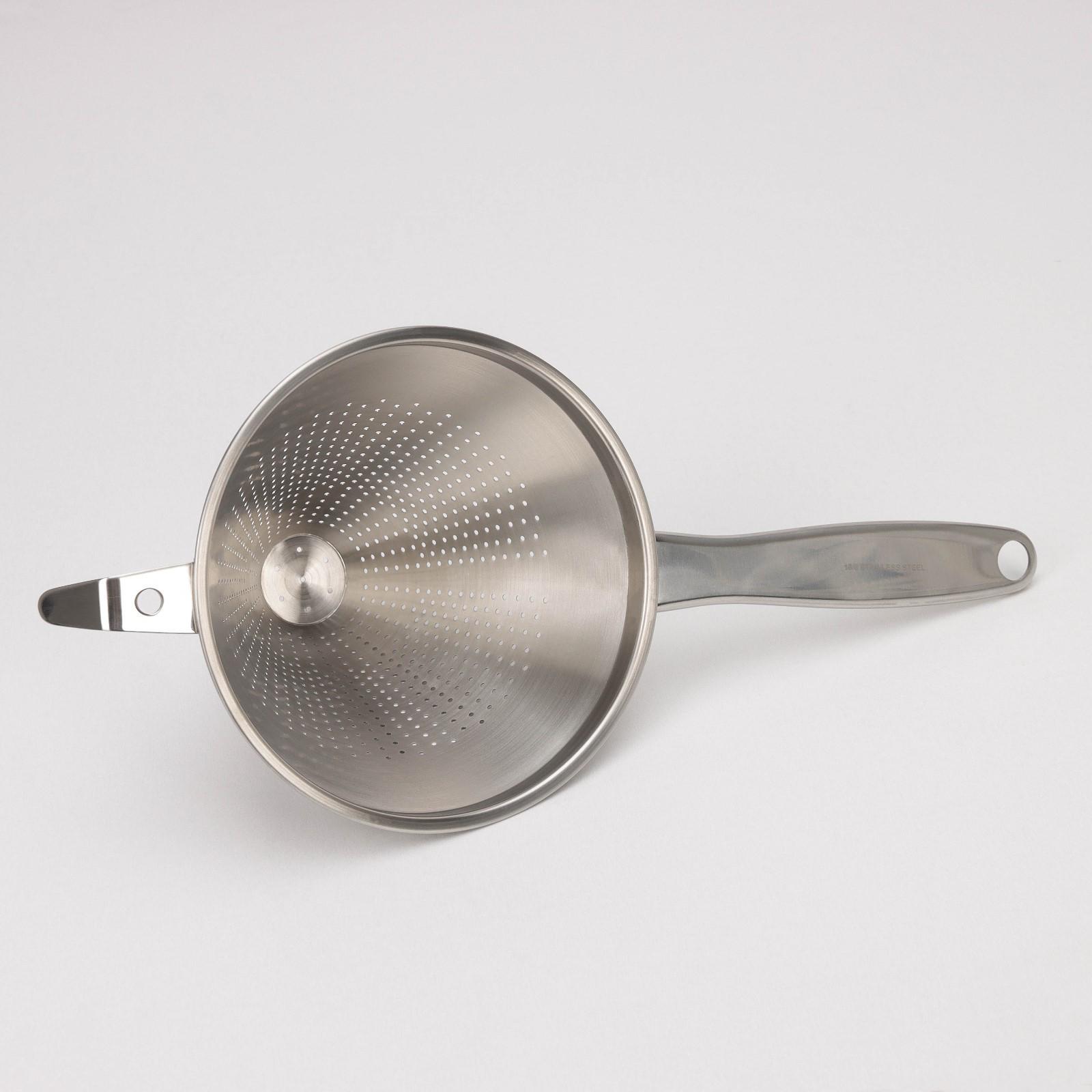 Дуршлаг изготовлен из качественной нержавеющей стали и имеет удобную ручку. Такой посудой легко пользоваться и легко мыть.