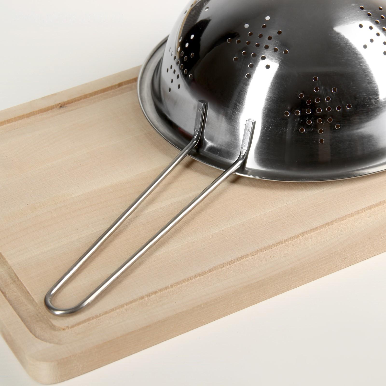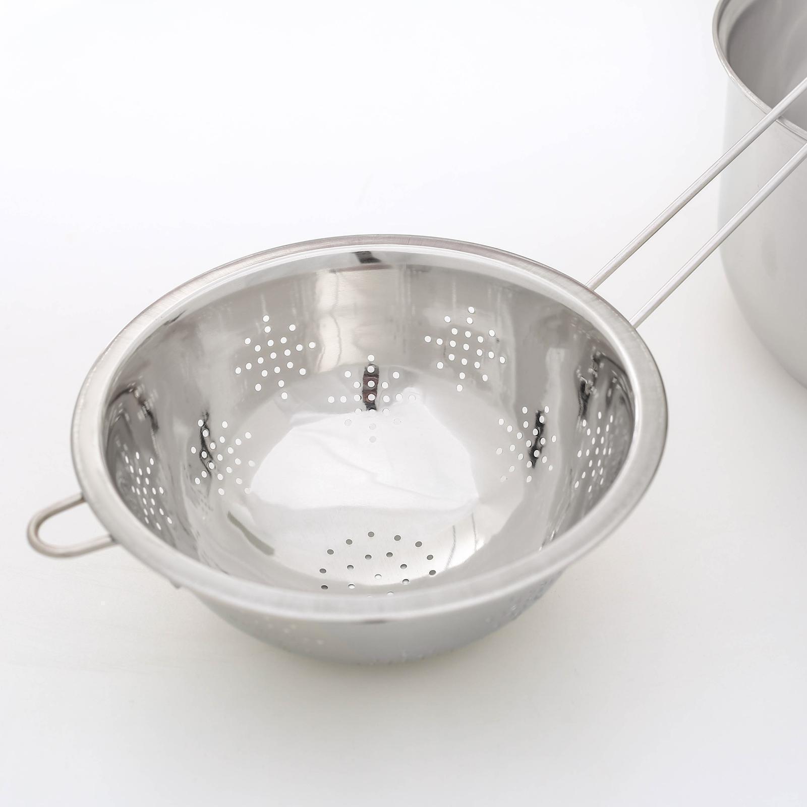 Дуршлаг изготовлен из качественной нержавеющей стали и имеет удобную ручку. Такой посудой легко пользоваться и легко мыть.