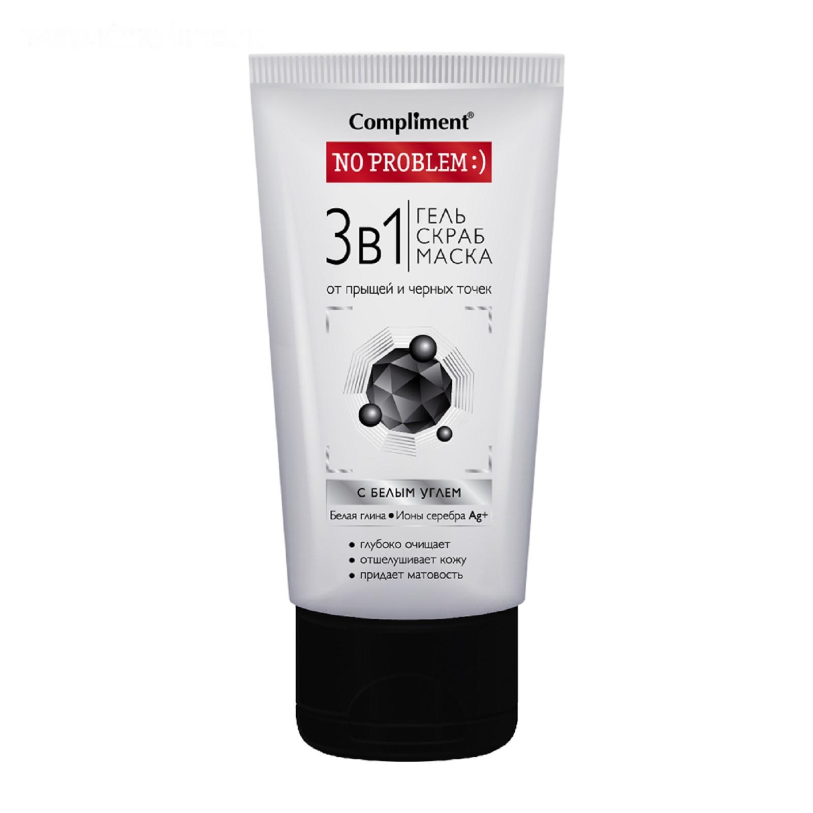 Гель-скраб-маска 3 в 1 Compliment No Problem, угольная, от прыщей и черных точек, 150 мл