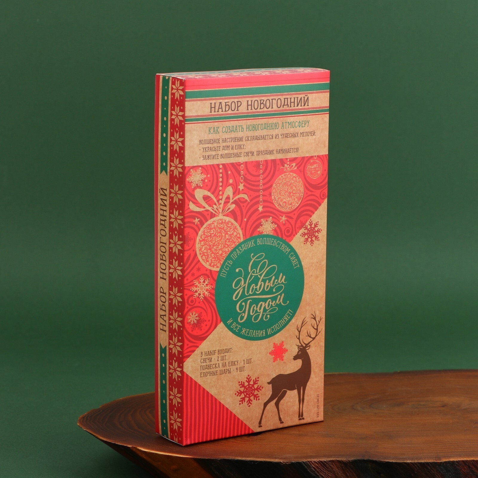 Набор витых свечей с декором прекрасно впишутся в любой новогодний интерьер и создадут праздничное настроение. Такой подарок отлично подойдет для подарка вашим родным и близким, благодаря красивой упаковке. В набор входит 2 античные свечи (1,5 х 1,5 х 20 см.), 4 елочных шара (2,5 х 3,5 см.) и подвеска на елку в виде варежки (5,5 х 0,5 х 8,5 см.)