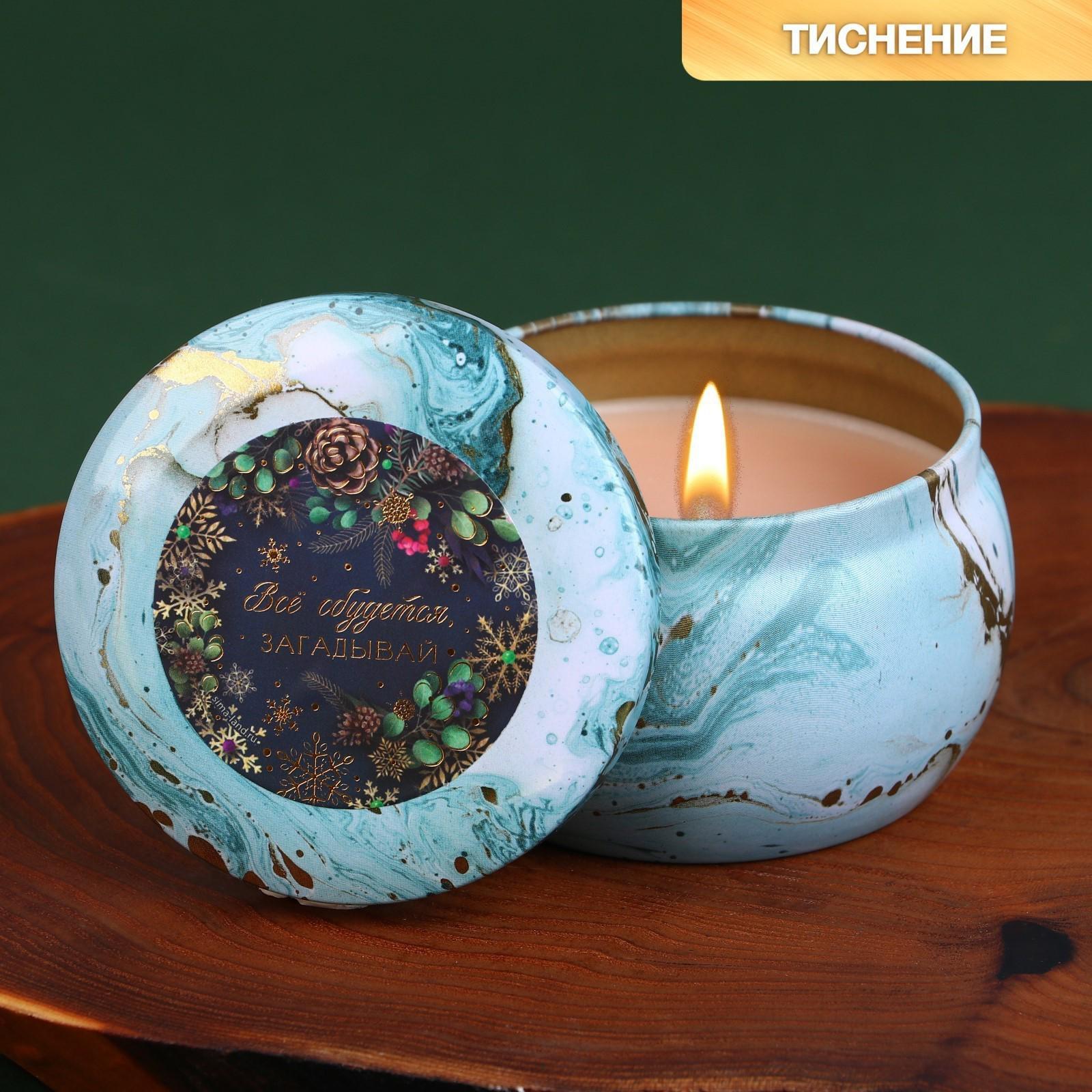 Новогодняя свеча в железной банке «Загадывай», аромат ваниль, 7 х 7 х 5,5 см.