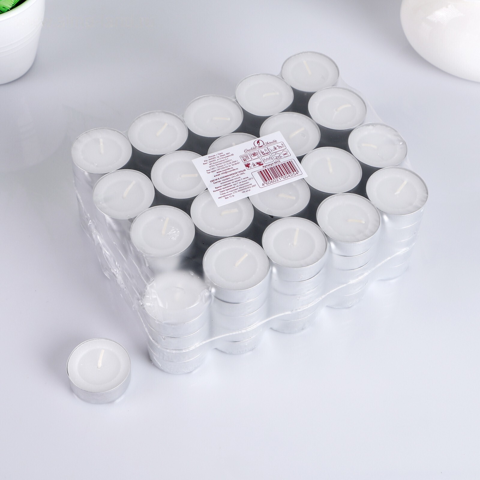 Набор чайных свечей, 3,8х1,6 см, 3,5 ч, 12 г, 100 штук, белый