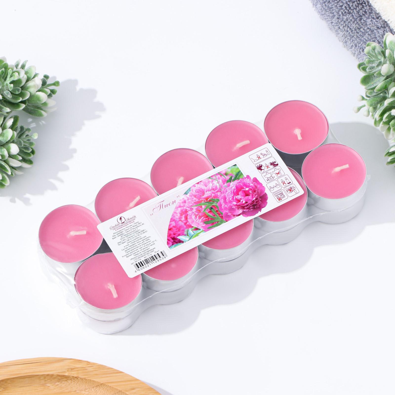 Набор чайных свечей ароматических в термоусадке "Пион", 3,8х1,6 см, 3,5 ч, 12 г, 20 штук