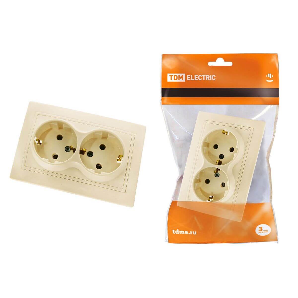 Розетка двойная 2P+PE TDM Electric Таймыр слоновая...