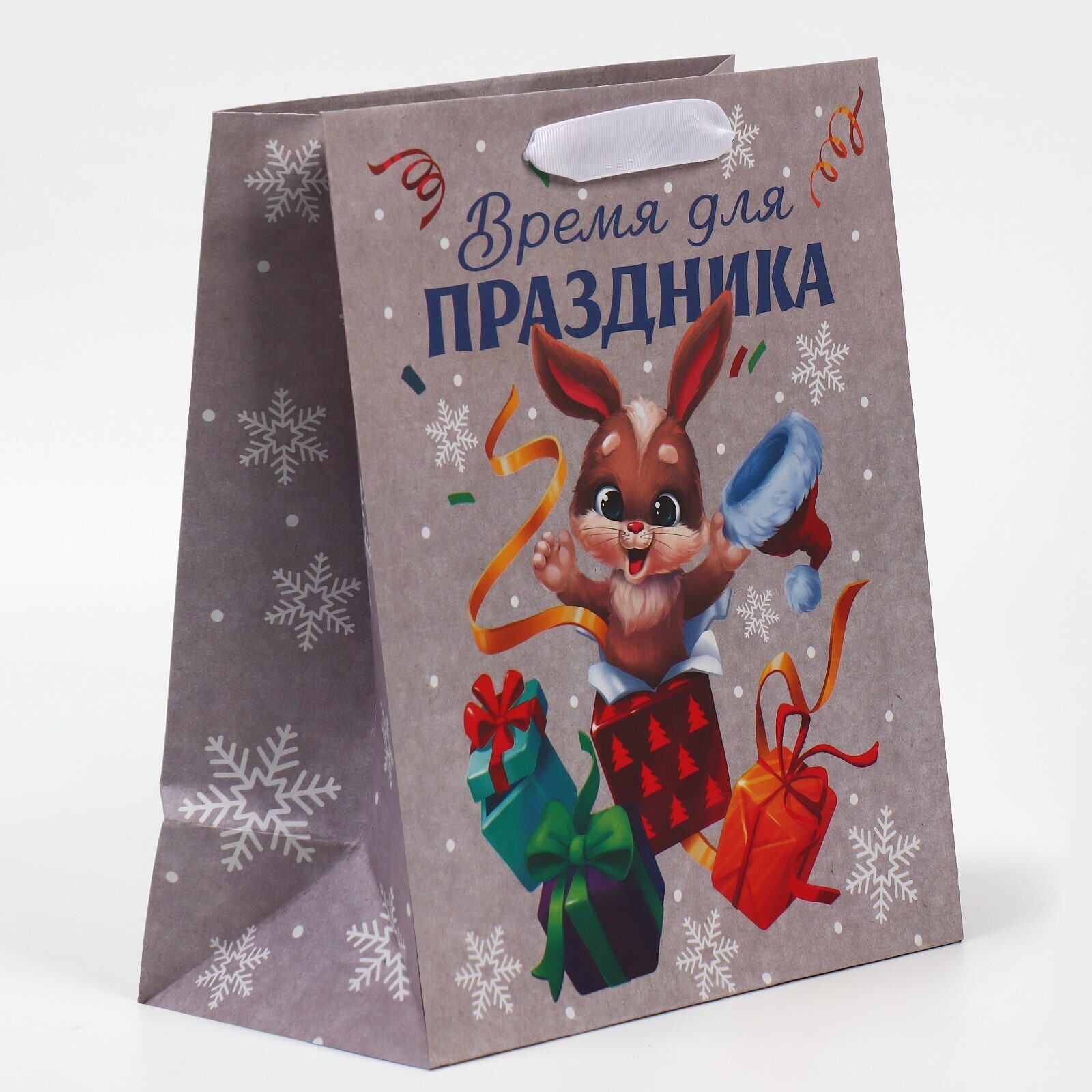 Пакет крафтовый вертикальный «Время для праздника», ML 23 × 27 × 11,5 см