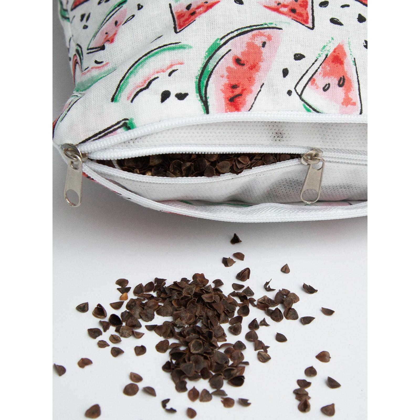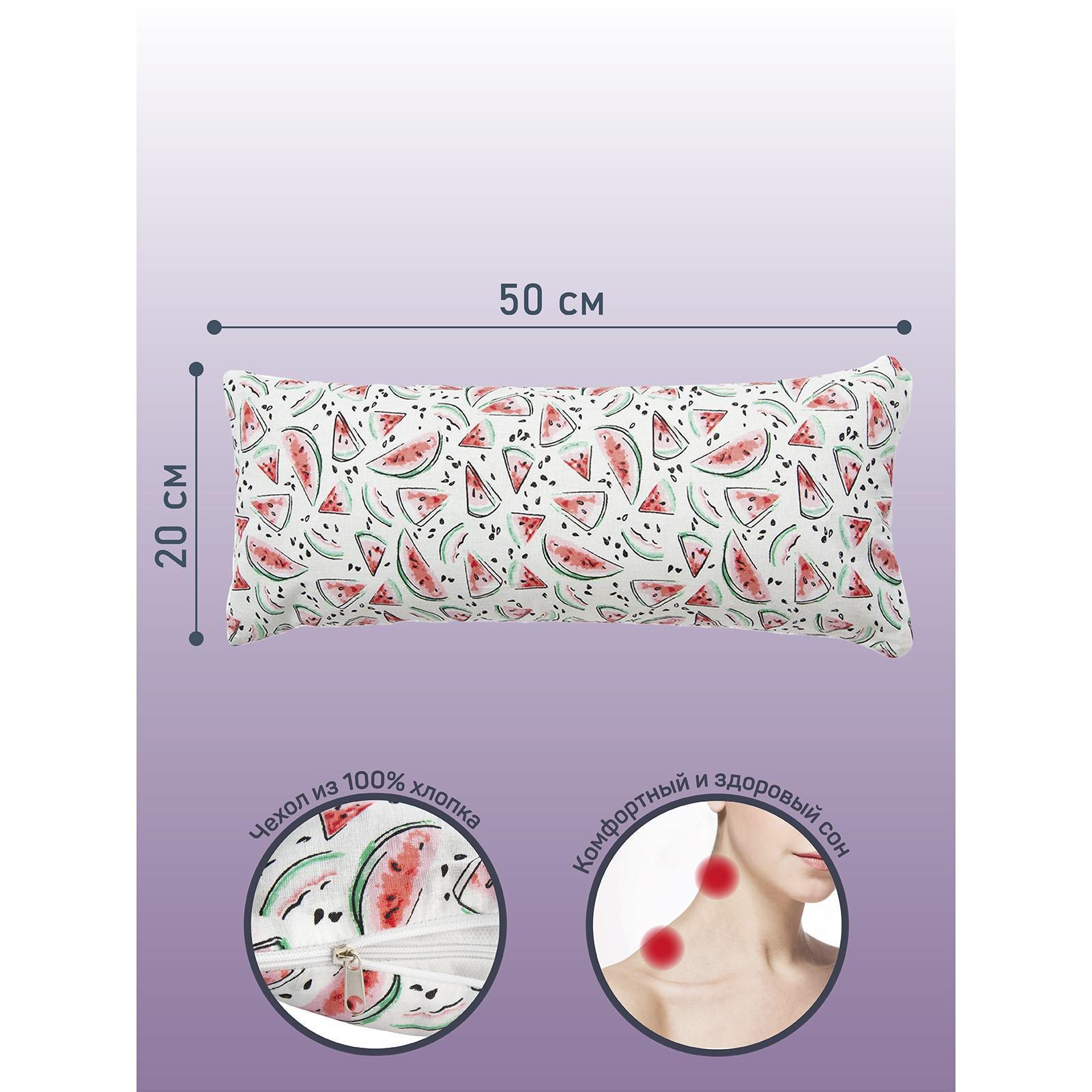 Подушка ортопедическая валик с лузгой гречихи, размер 20х50 см, aрбузики, цвет белый