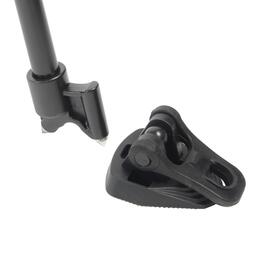 Поперечная растяжка, прикрепленная к средним секциям трипода, в рабочем положении опор штатива располагается горизонтально, определяет размах ног и усиливает конструкцию.
