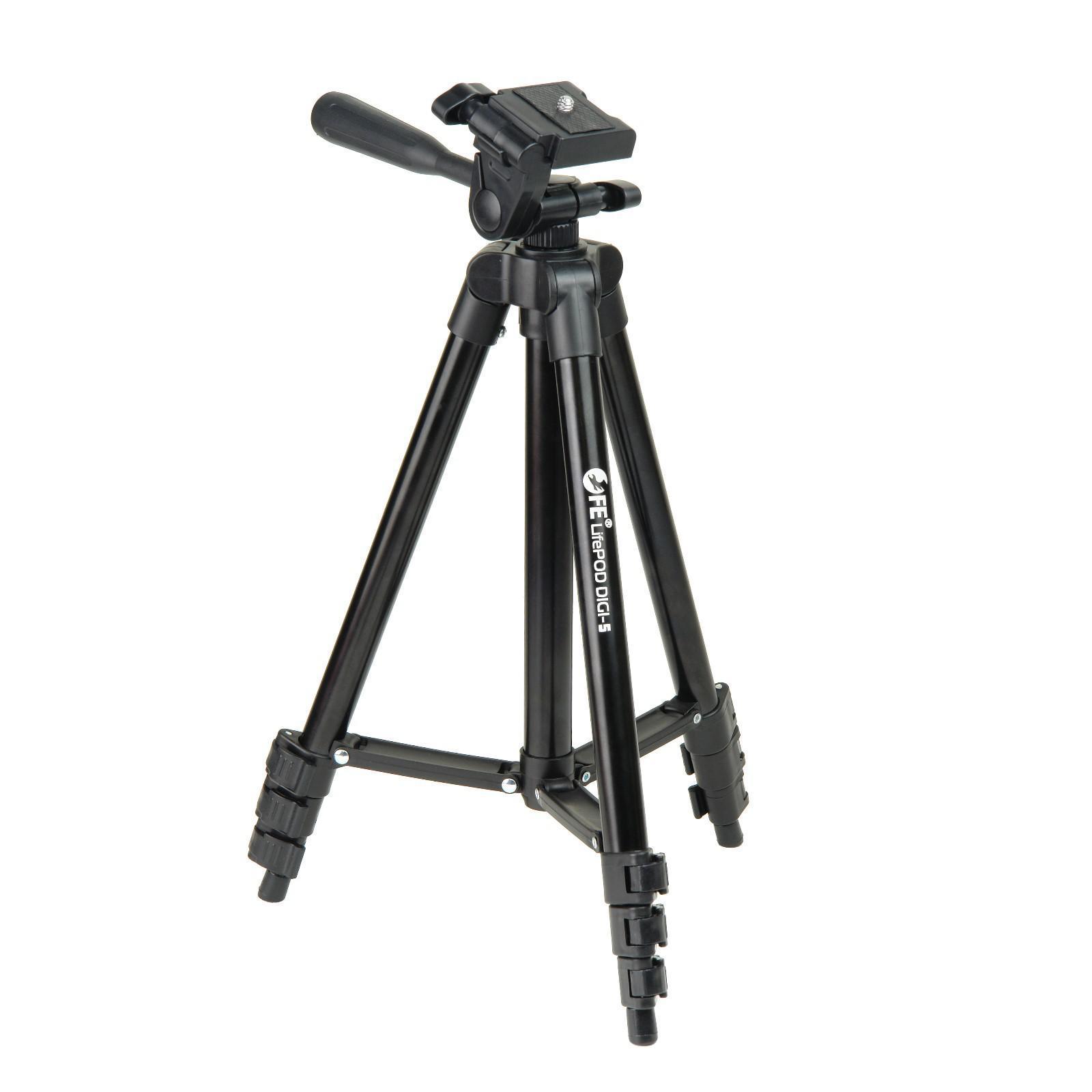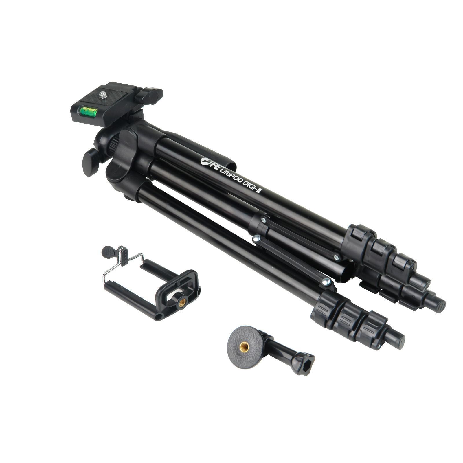 Штатив Falcon Eyes LifePOD DIGI-5 – универсальный легкий штатив весом 360 г, для установки фотокамеры, смартфона или камеры GoPro (адаптеры в комплекте). Штатив пригодится в первую очередь активным любителям фото- или видеосъемок благодаря небольшому размеру в сложенном виде 34 см и малому весу. Нагрузка при этом достигает 2 кг, а максимальная высота штатива – 106 см. Минимальная высота – 34 см, поэтому штатив можно использовать как настольный даже в домашней фотостудии, например для предметной съемки.