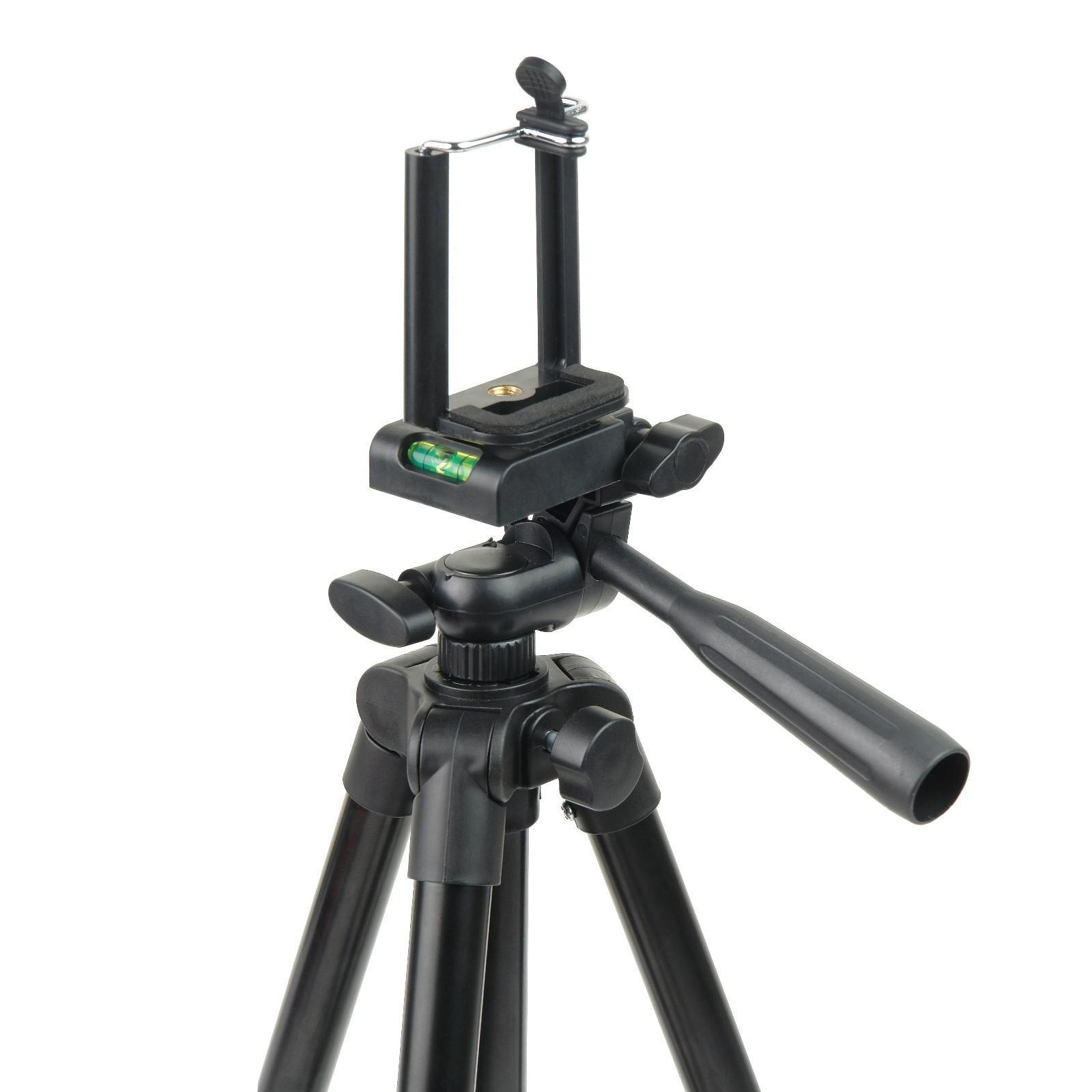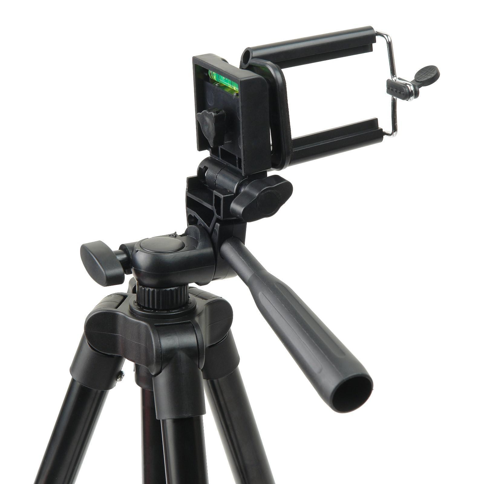 Штативная головка 3D позволяет устанавливать фотокамеру или смартфон в положения для съемки вертикальных или горизонтальных кадров. Штатив можно выставить и зафиксировать в выбранном положении относительно горизонта с помощью пузырькового уровня на головке
