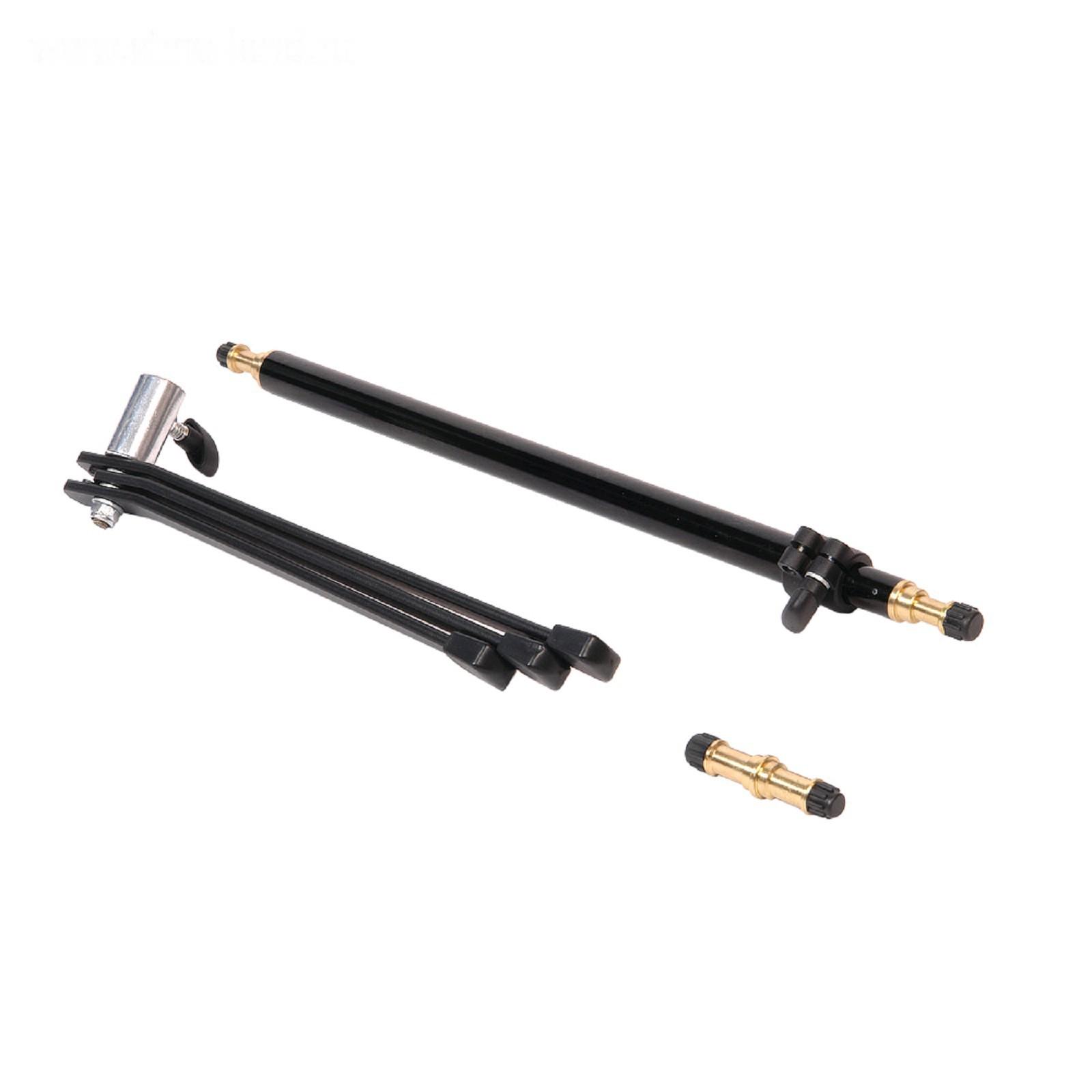 Для максимально низкой установки осветительного оборудования, колонну необходимо вытащить из основания и используя комплектный двухсторонний шпигот 5/8″ с винтами с резьбой 1/4″ и 3/8″ — установить оборудование на нём вместо колонны. Но даже если и этой высоты будет много, шпигот можно вкрутить непосредственно в одну из ножек — для этого на ней есть отверстие с резьбой 3/8 дюйма.
