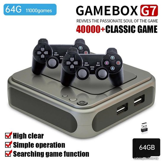 • Полная комплектация 1 x Игровая приставка G72 x геймпада1 x Пульт дистанционного управления1 x HD кабель 1 x шнур питания1 x Руководство пользователя