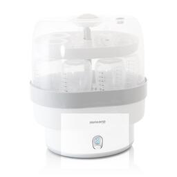 С его помощью можно стерилизовать все виды бутылочек, а также аксессуары для молокоотсосов, которые могут быть размещены в специальном отсеке.