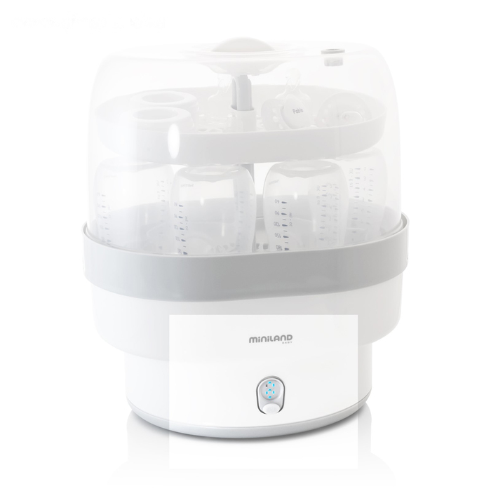 Стерилизатор Miniland Steamy предназначен для эффективной стерилизации до шести бутылочек для кормления и сохранения их стерильности в течение трёх часов.