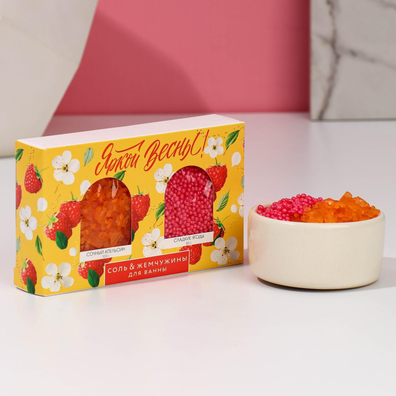 Набор "Яркой весны!", соль и жемчуг для ванны, апельсин и ягоды